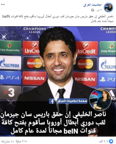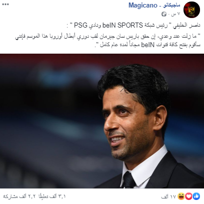 المواقع والحسابات، دون أي تصريح من الخليفي أو بي إن سبورت أيضاً.