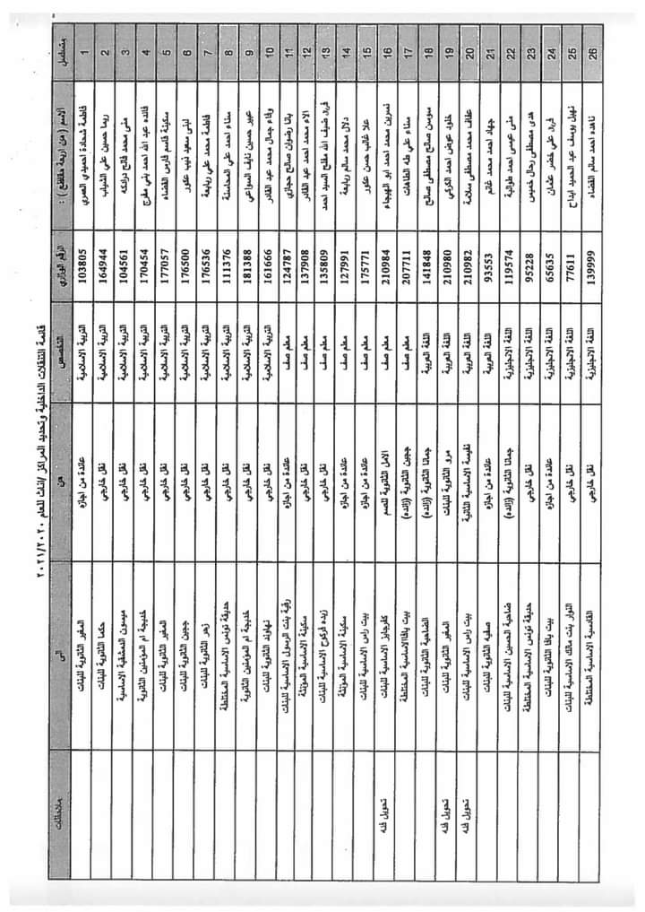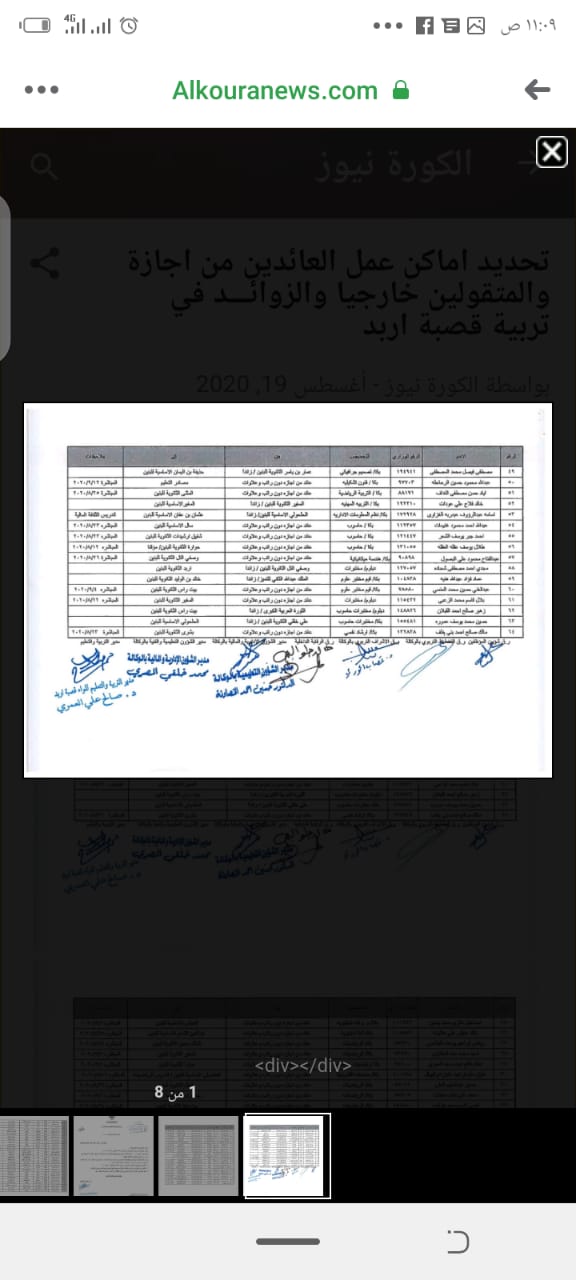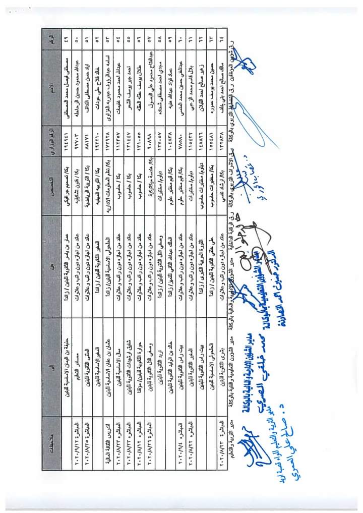 حدد مدير التربية والتعليم ، الدكتور صالح العمري ، للواء قصبة اربد ، مراكز عمل القادمين والزوائد ، في نقل الاسماء المتواجدة في الكشوفات ،وفق وثائق حصلت عليها نيروز ، من والى المدرسة إزاء اسم كل منهم .