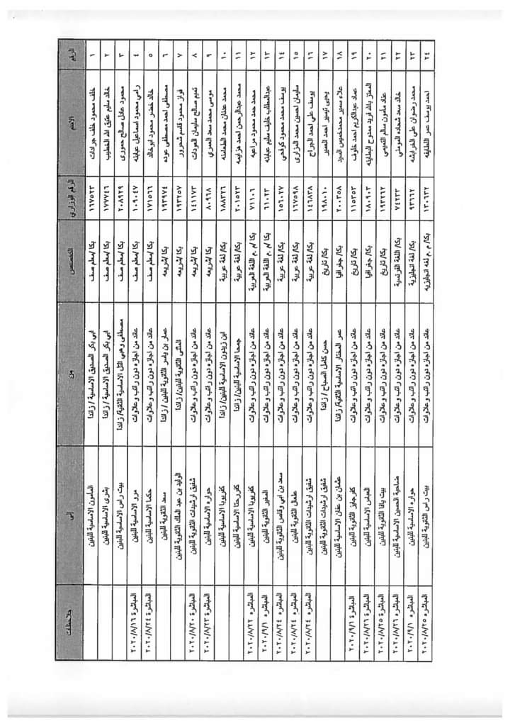 واضاف العمري ، أنه تم تحديد مراكز عمل العائدين من إجازة دون راتب وعلاوات ، والمنقولين خارجياً .