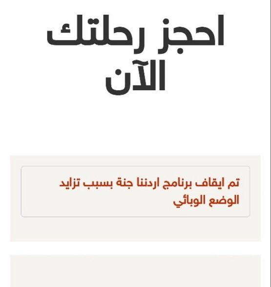 قررت وزارة السياحة والآثار ليل السبت إيقاف برنامج "أردننا جنة" بحسب ما أظهره موقع البرنامج لحجز الرحلات السياحية.