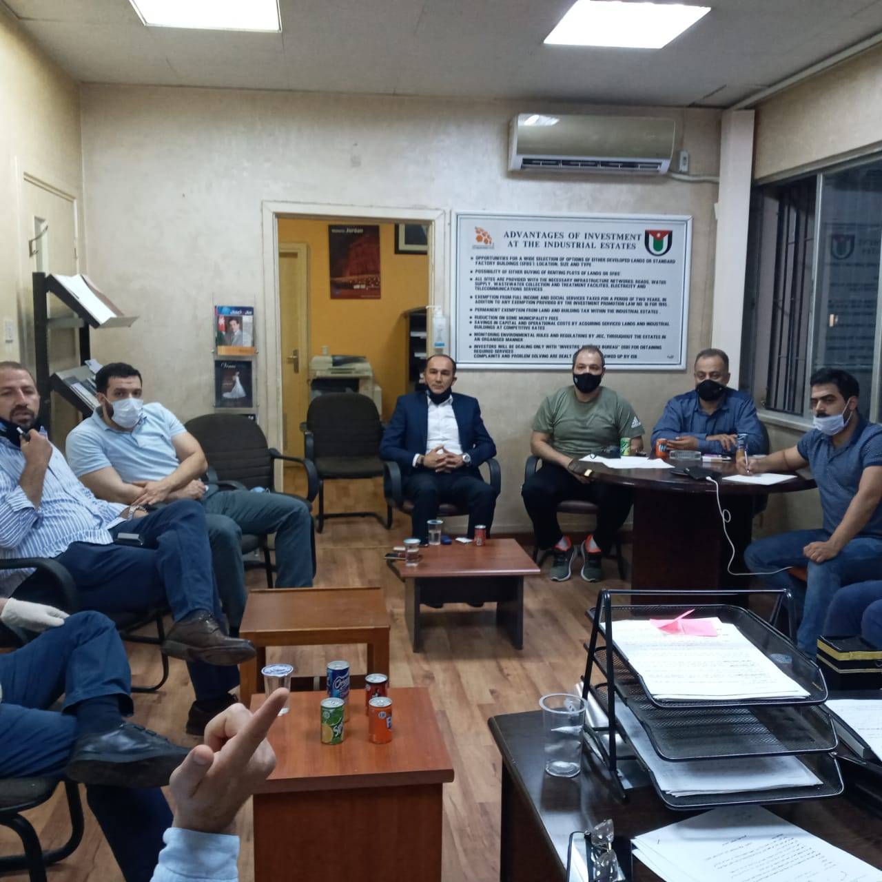 وبحث الجغبير مع نائب مدير عام شركة المدن الصناعية معتز نمروقة الذي كان باستقباله بحضور عدد من كبار موظفي شركة المدن الصناعية، الإجراءات التي تطبقها المصانع الأردنية بإشراف من إدارة المدن الصناعية.