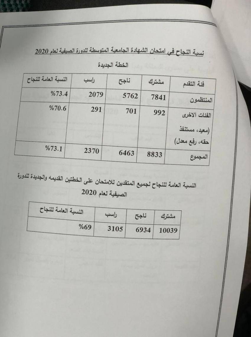 وقال الزعبي خلال مؤتمر صحفي عقده الخميس إن نسبة النجاح في الخطط الجديدة بلغت 73.1% وهي أعلى نسبة نجاح يسجلها الامتحان الشامل في الأردن.