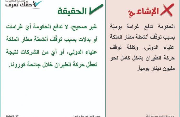 وكان قد أشيع أن الحكومة تدفع غرامات يومية بسبب توقف أنشطة مطار الملكة علياء الدولي، وأن كلفة توقف حركو الطيران بشكل كامل نحو مليون دينار يوميا.