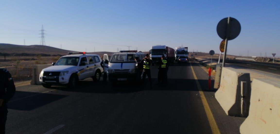 تم اليوم الإنتهاء من تنفيذ مقطع ما بعد جسر الكرك على الطريق الصحراوي بطول حوالي 7 كم للمسرب القادم من عمان بإتجاه العقبة و فتح التحويلة أمام حركة السير علما بأن هذا المقطع مسربين مع أكتاف أسفلتية داخلية و خارجية وهو مجهز بكافة وسائل السلامة المرورية الأساسية.