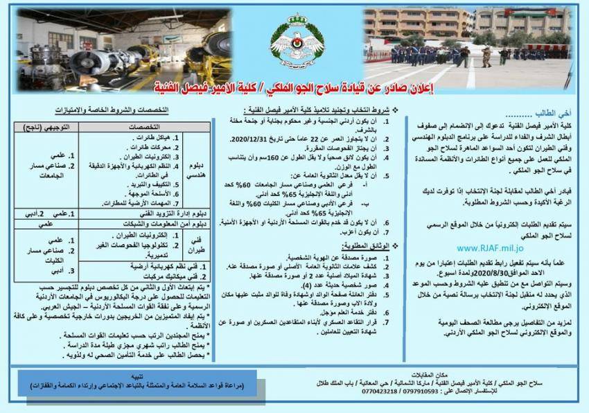 سيتم تقديم الطلبات إلكترونياً من خلال الموقع الرسمي لسلاح الجو الملكي،