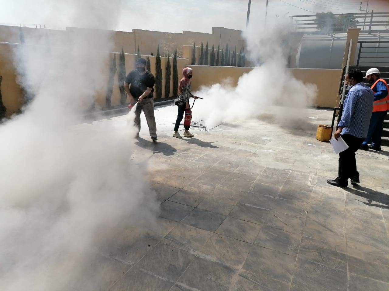 حيث تم تدريب المشاركين داخل معاهد السلامة والصحة المهنية الثلاثة على الية مكافحة الحريق بشتى وسائل المكافحة، فضلاً عن تنفيذ خطط الاخلاء والانقاذ والتدريب على الاسعافات الاولية، إلى جانب تدريب المشاركين على امور السلامة والصحة المهنية.