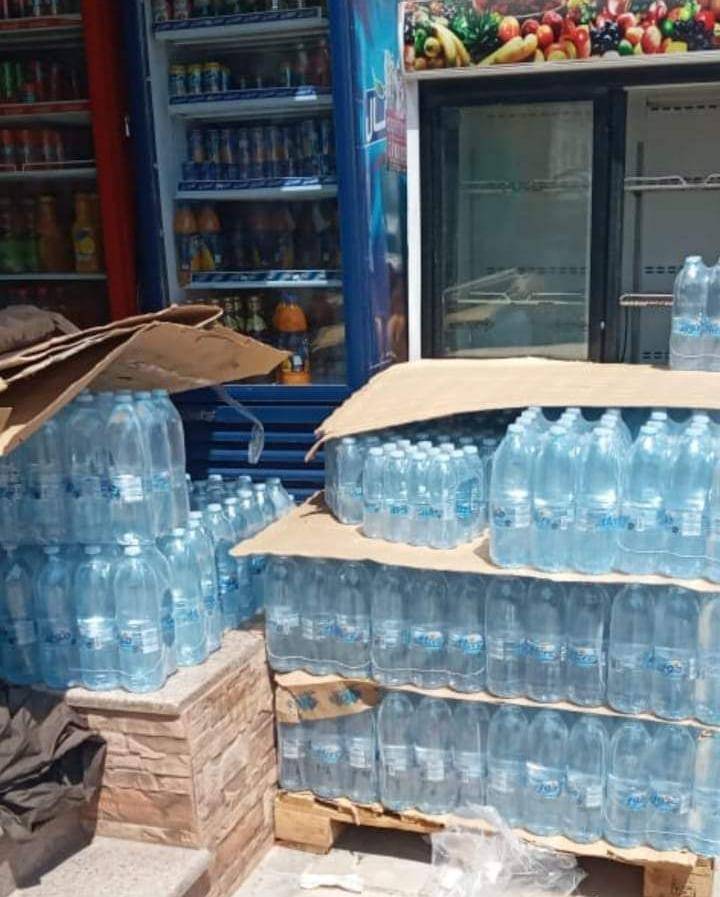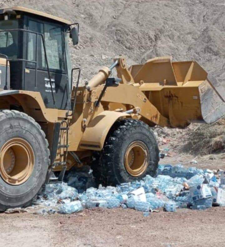 سلطة العقبة تتلف عبوات مياه معروضة تحت اشعة الشمس.