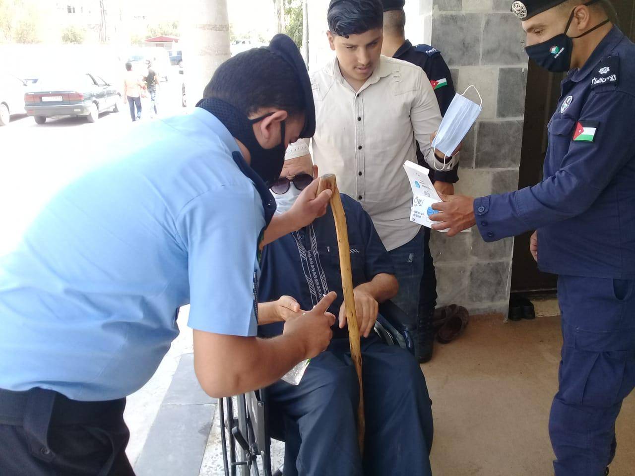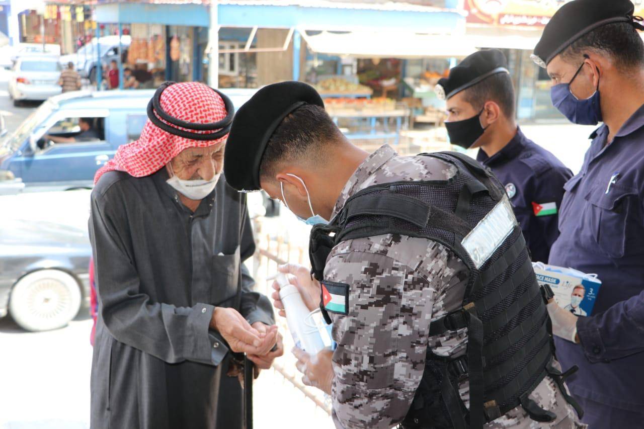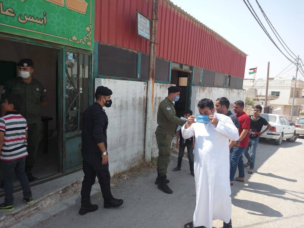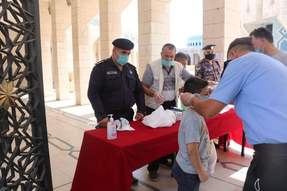 كما وقام رجال الامن العام بتوزيع وسائل السلامة العامة من كمامات ومعقمات على المصلين ، واظهر المصلين استجابة كبيرة مع رجال الامن العام والتزام بقواعد السلامة والصحة العامة