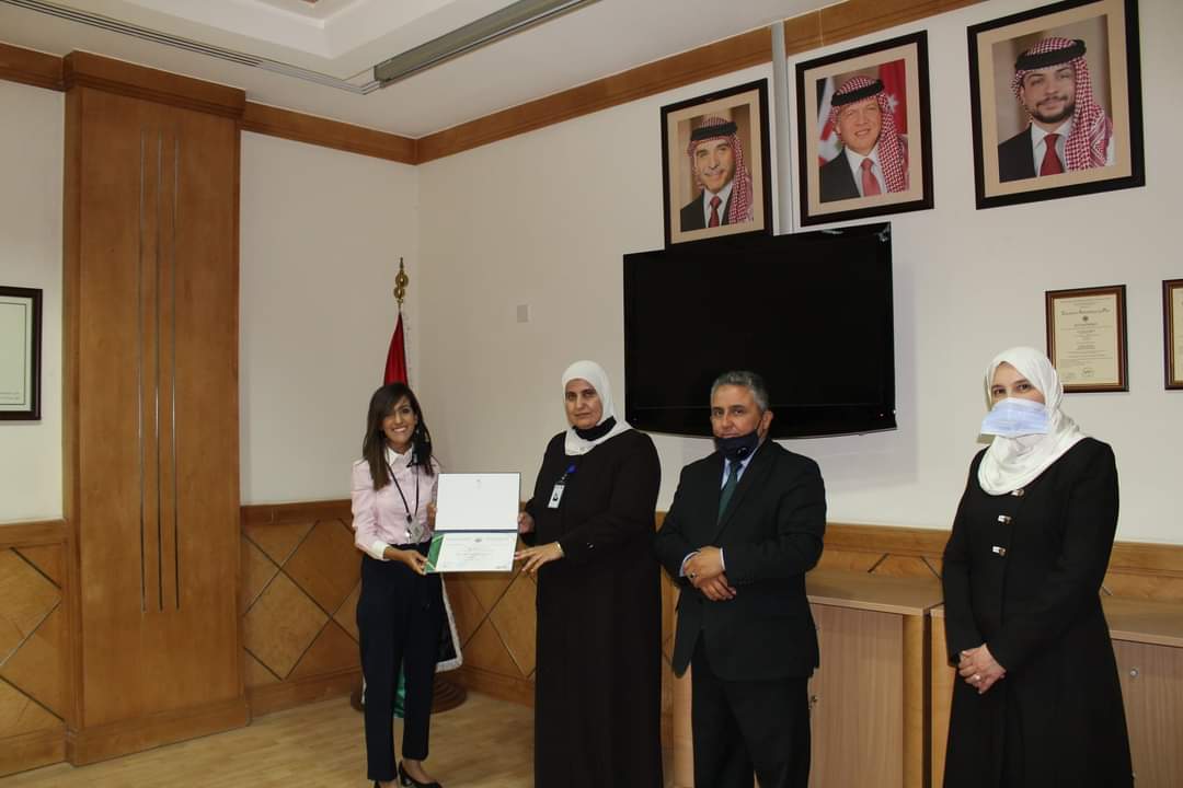 وفي ختام اللقاء سلّمت المهندسة الزهير والمهندس الفلاحات عدداً من الشهادات لموظفي المؤسسة ممن شاركوا بدورات تدريبية عقدتها النقابة لكوادر المؤسسة.