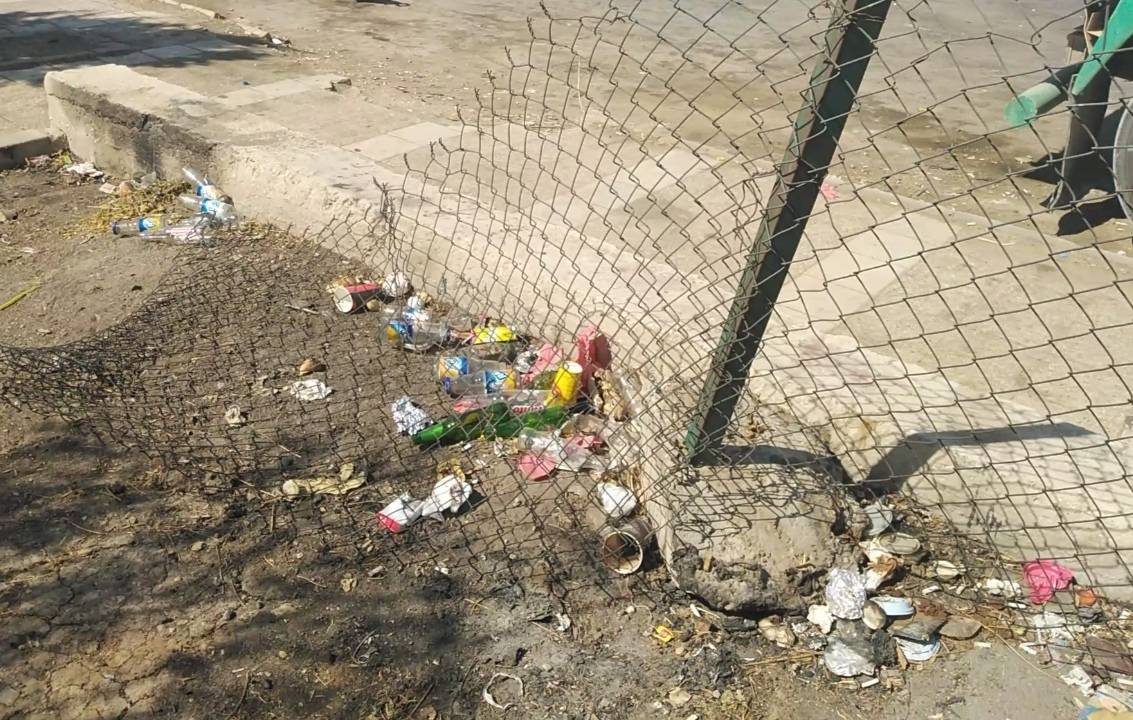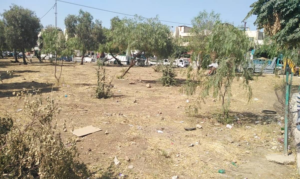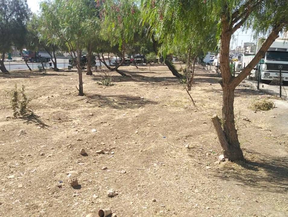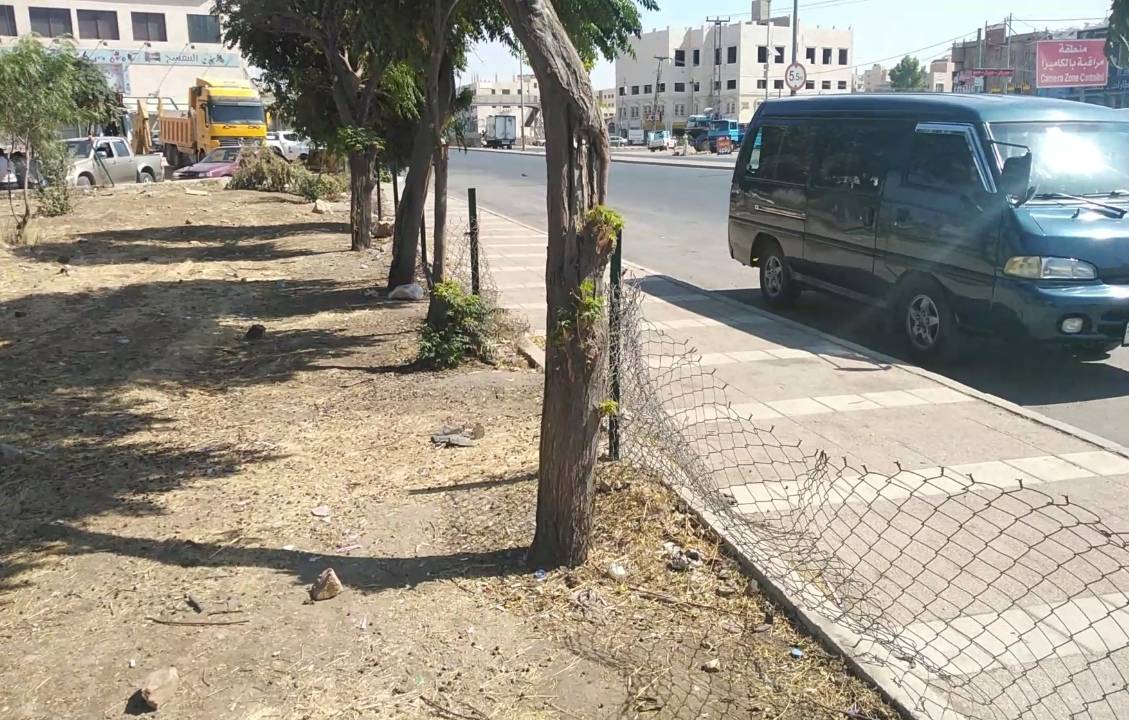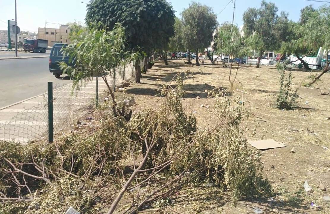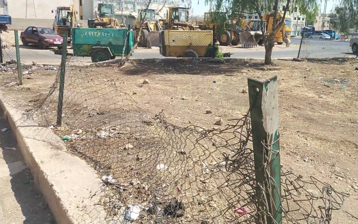 الحديقة سياجها الخارجي متهالك ومقطع ومفتوح من كل الأماكن وكذلك فإن الأشجار