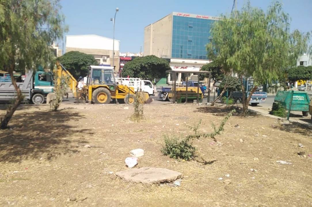 بلا عناية من سنوات وكذلك الحديقة بلا نظافة وتنتشر بها أكوام القمامة والاوساخ عدا عن حرق المخلفات بداخلها وعلى جنباتها.