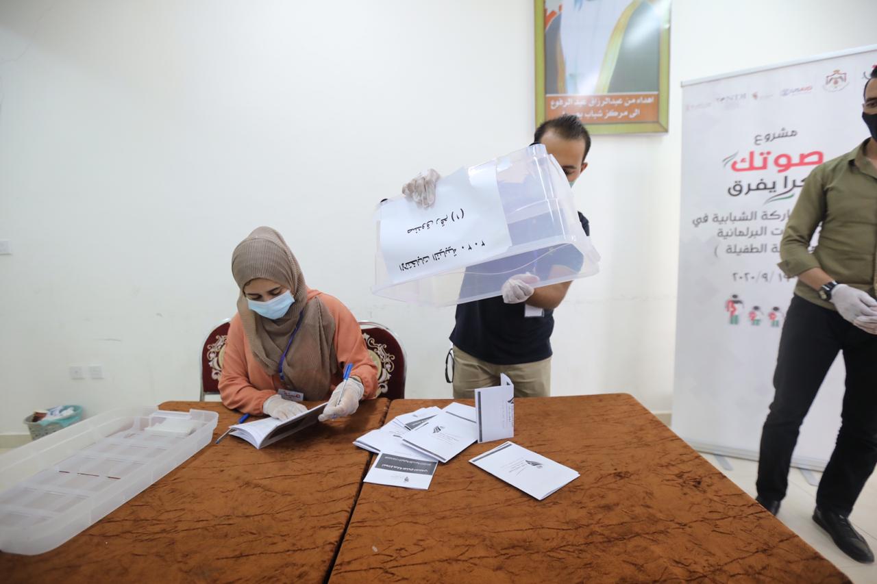 المشروع الذي تنفذه وزارة الشباب بالتعاون مع وزارة الشؤون السياسية والبرلمانية والهيئة المستقلة للانتخاب، في مركز شباب وشابات الأمير محمد في محافظة الزرقاء ومركز شابات جرش في محافظة جرش، ومركز شباب بصيرا في محافظة الطفيلة، تطرق اليوم لمعايير الانتخاب، وآلية احتساب الأصوات، وكيفية تقديم الاعتراض من قبل المرشحين على منافسينهم، والتدريب على كيفية تعبئة نموذج ورقة الاقتراع الانتخابية، وكيفية توزيع القوائم الانتخابية.