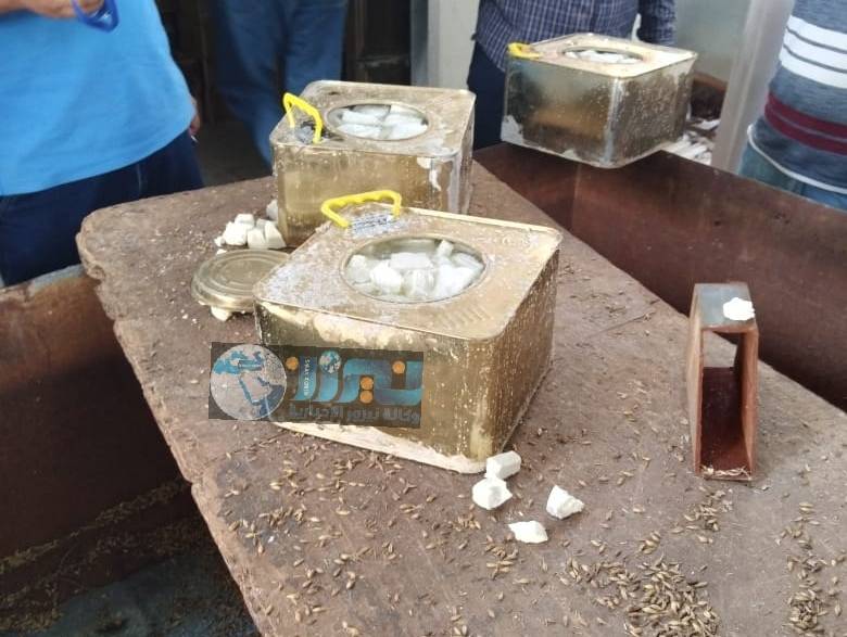 وتراوح عدد تنكات الجبن التي تم ضبطها حوالي 1288  تنكة بوزن  من 5 إلى 7 طن تقريباً  .