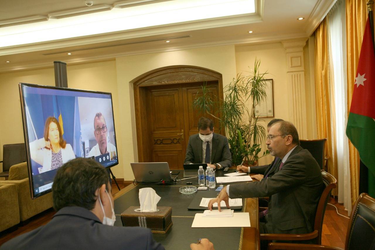عقد وزير الخارجية وشؤون المغتربين أيمن الصفدي ووزيرة خارجية مملكة السويد آن ليند والمفوض العام لوكالة الأمم المتحدة لإغاثة وتشغيل اللاجئين الفلسطينيين (الأونروا) فيليب لازاريني اليوم اجتماعاً ثلاثياً، عبر آلية الاتصال المرئي، حول سبل حشد الدعم الدولي اللازم لتمكين الوكالة تلبية احتياجاتها المالية في ظل ما تواجه من ضغوطات مالية متزايدة ومتطلبات مواجهة انتشار جائحة فيروس كورونا. وقدم لازاريني ايجاز حول الوضع المالي للوكالة والجهود التي تقوم بها لتوفير الدعم اللازم وخطط الوكالة المستقبلية.