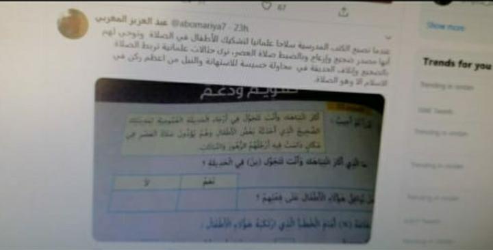 تداول بعض ناشطي وسائل التواصل الاجتماعي هذه الصورة على أنها من أحد الكتب المدرسية في الأردن.