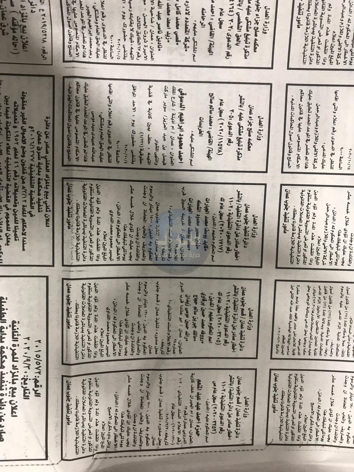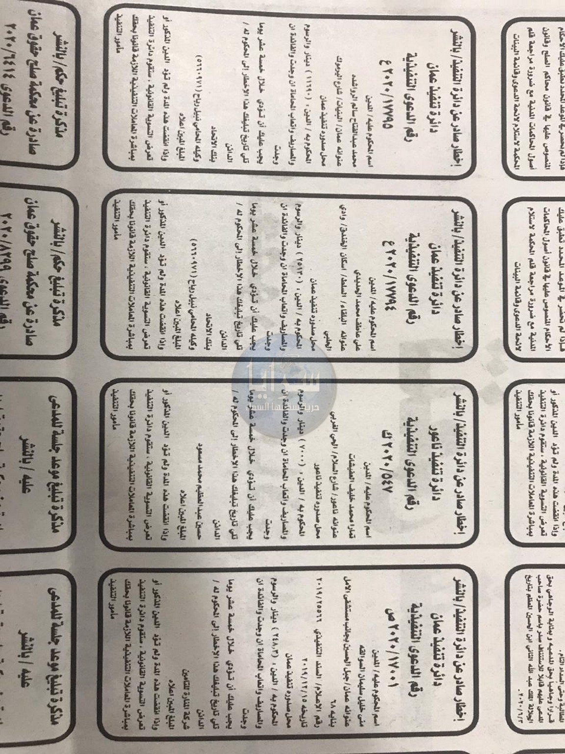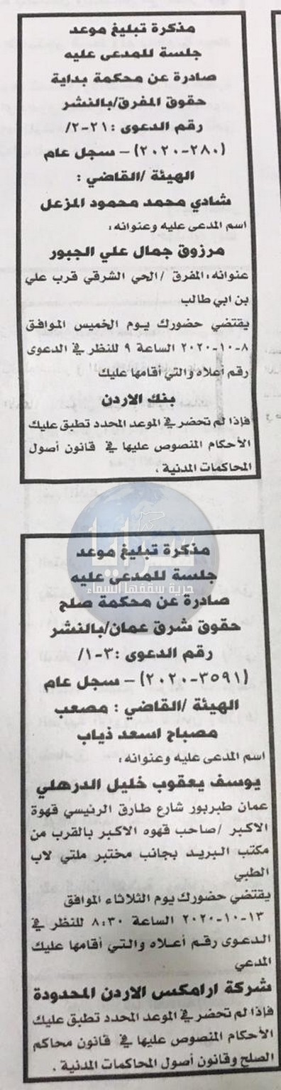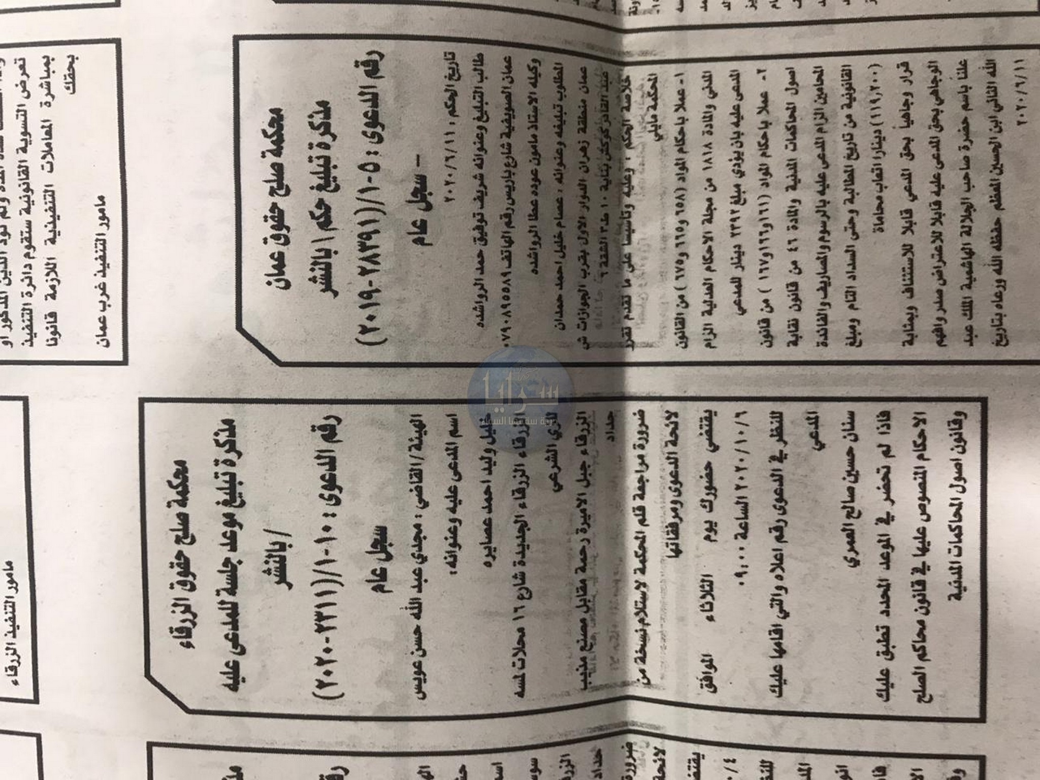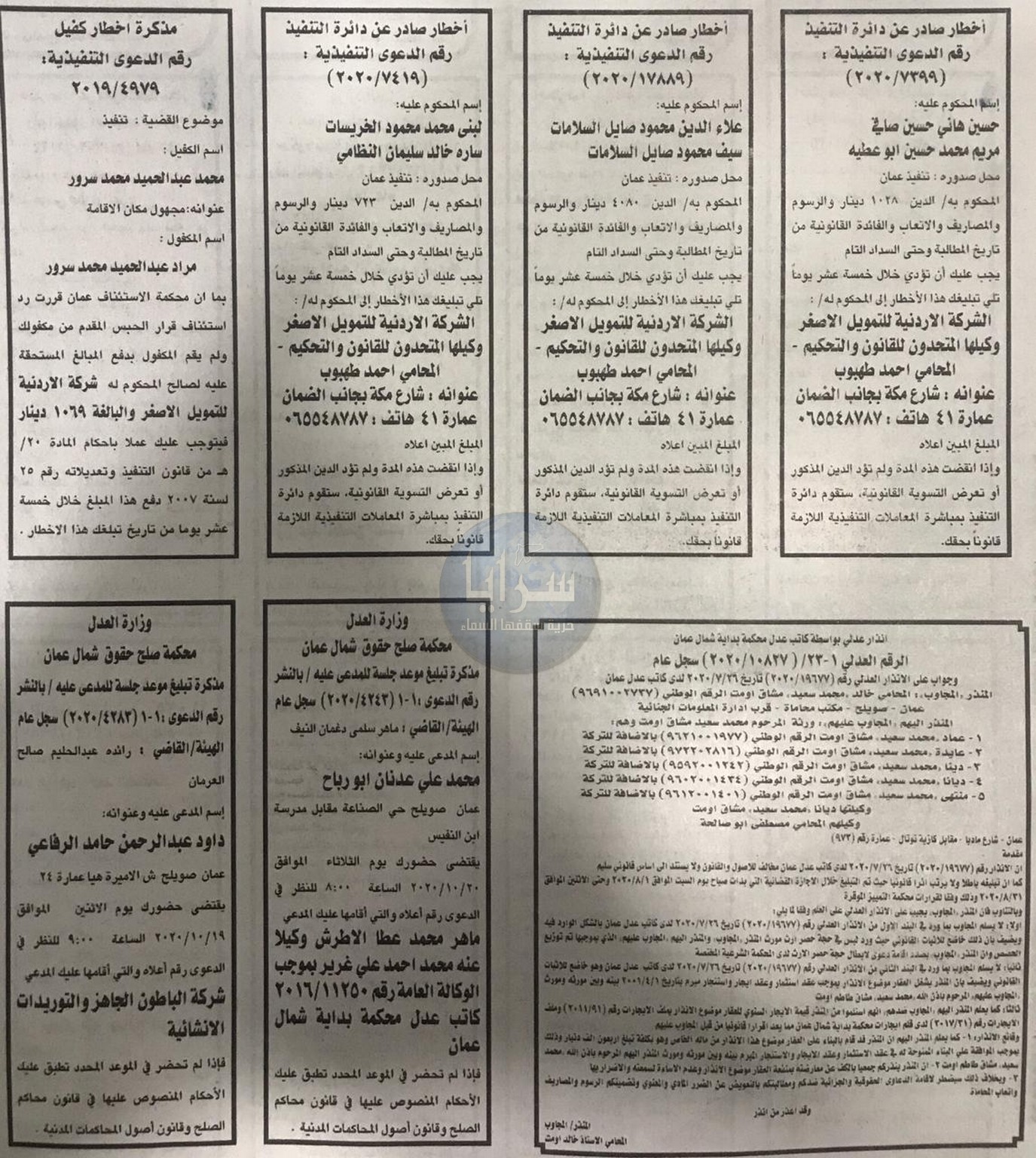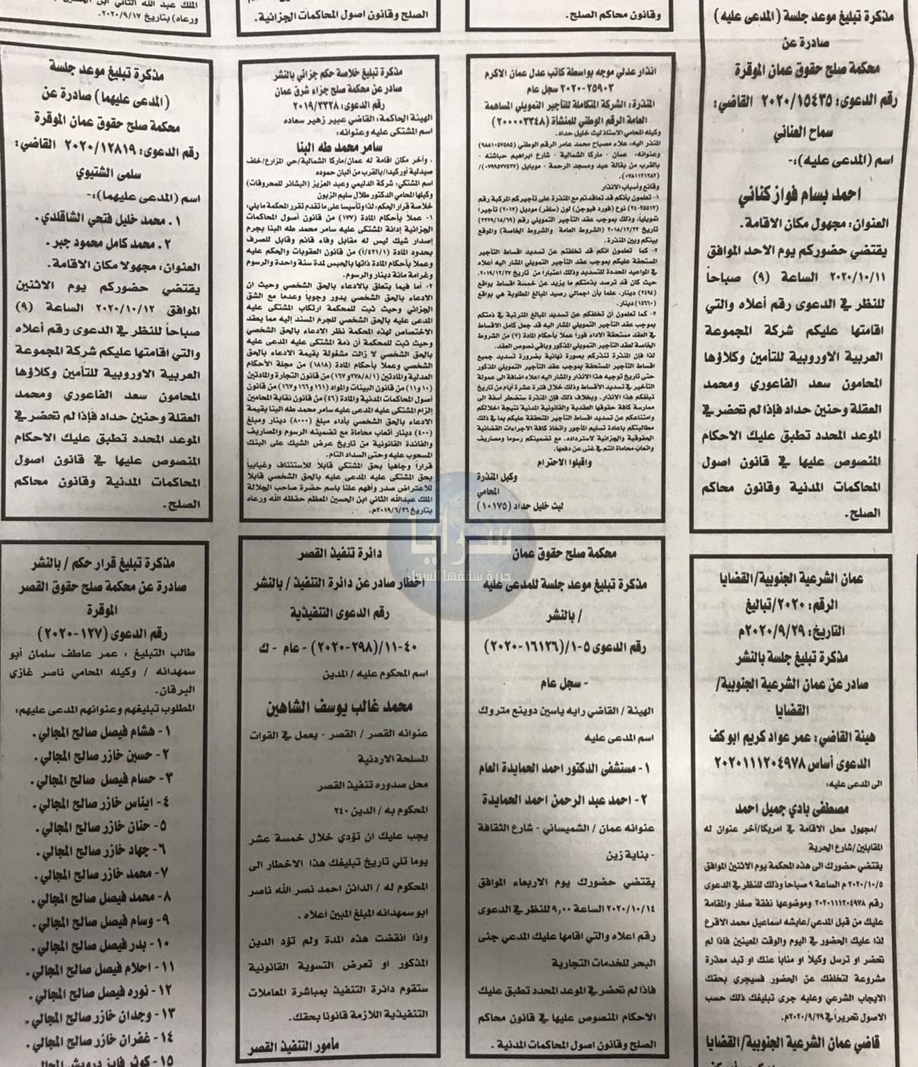 أصدرت أغلب المحاكم الاردنية بلاغات لأردنيين لحضور جلسات محكمة واعلانات لبيع عقارات بالمزاد العلني.