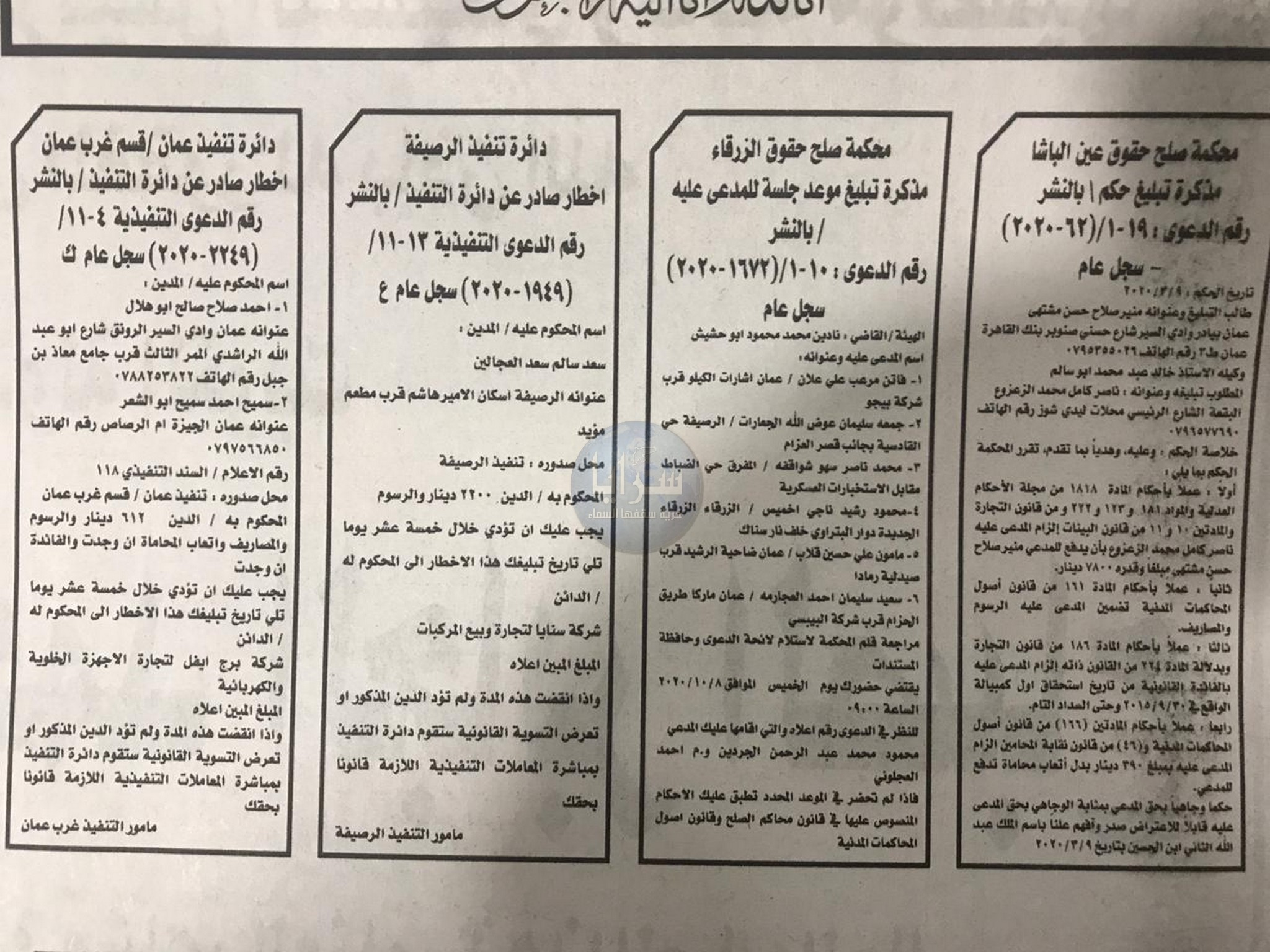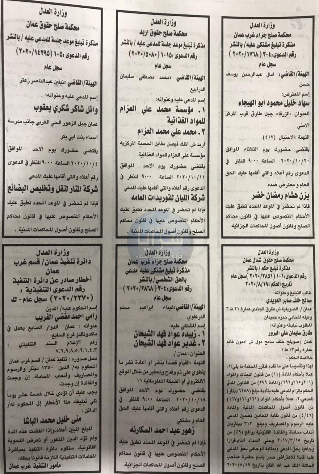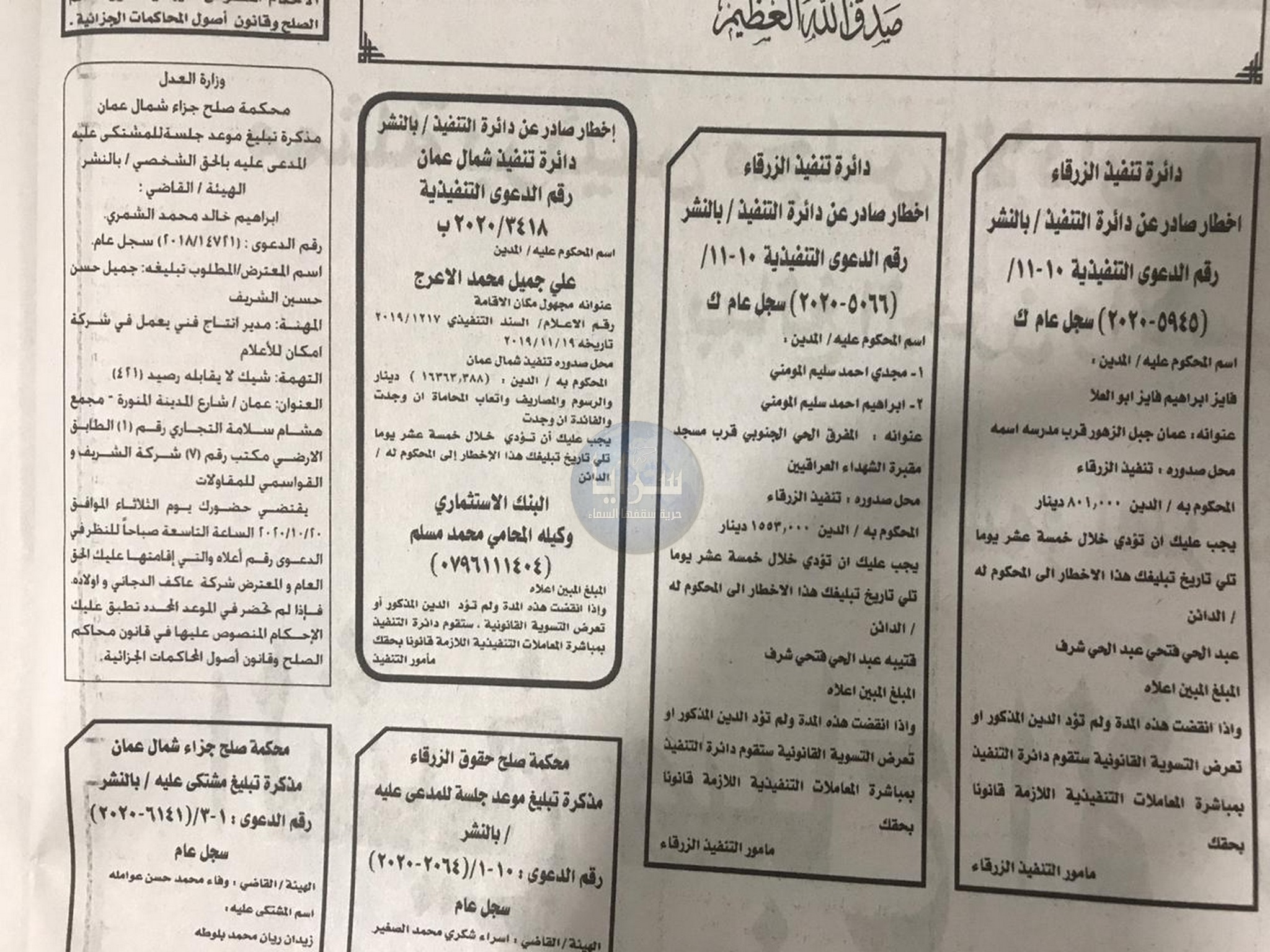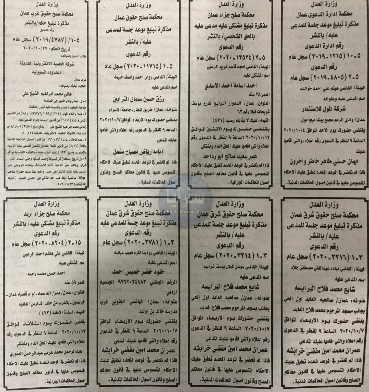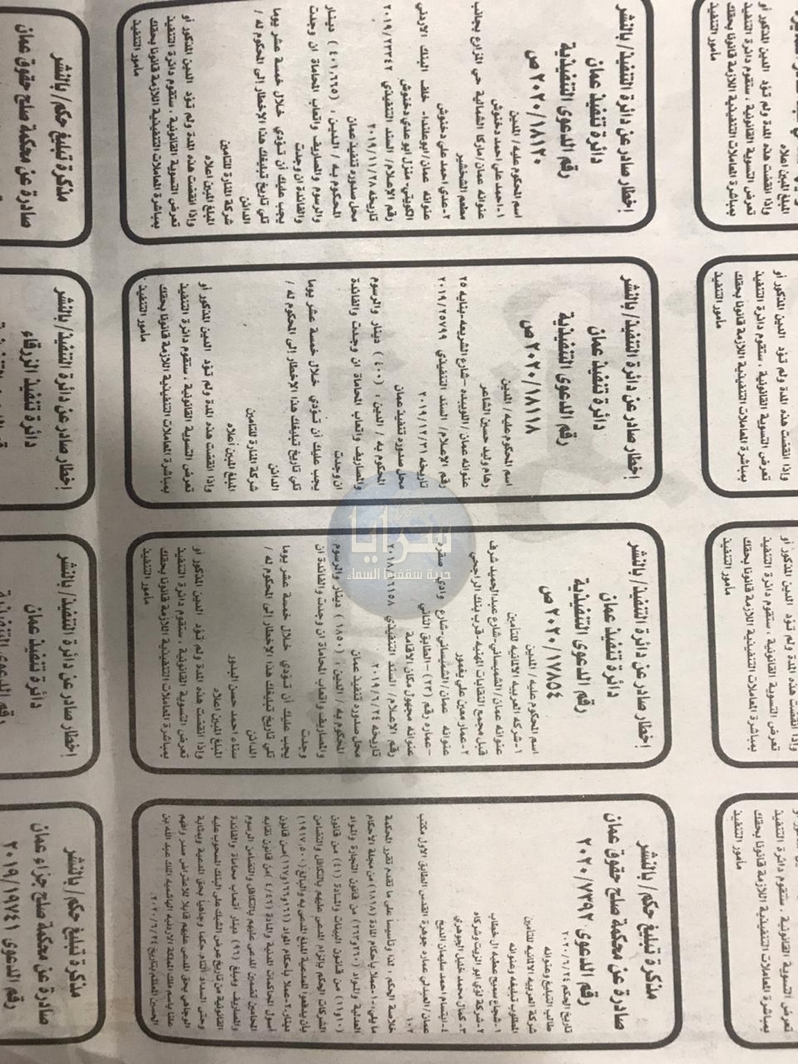 أصدرت أغلب المحاكم الاردنية بلاغات لأردنيين لحضور جلسات محكمة واعلانات لبيع عقارات بالمزاد العلني.