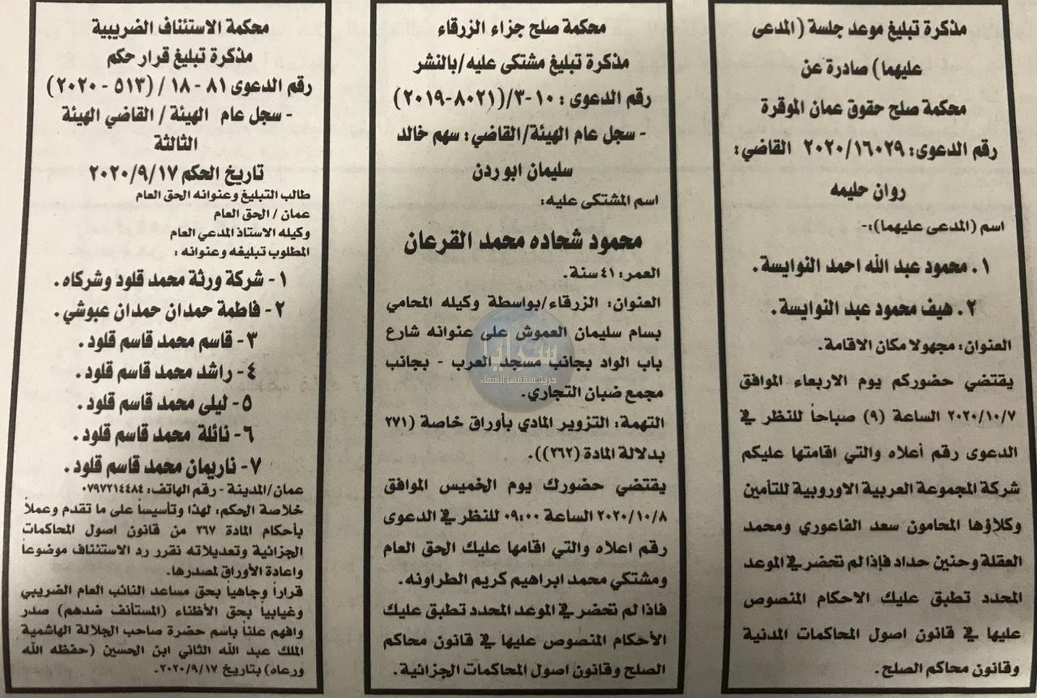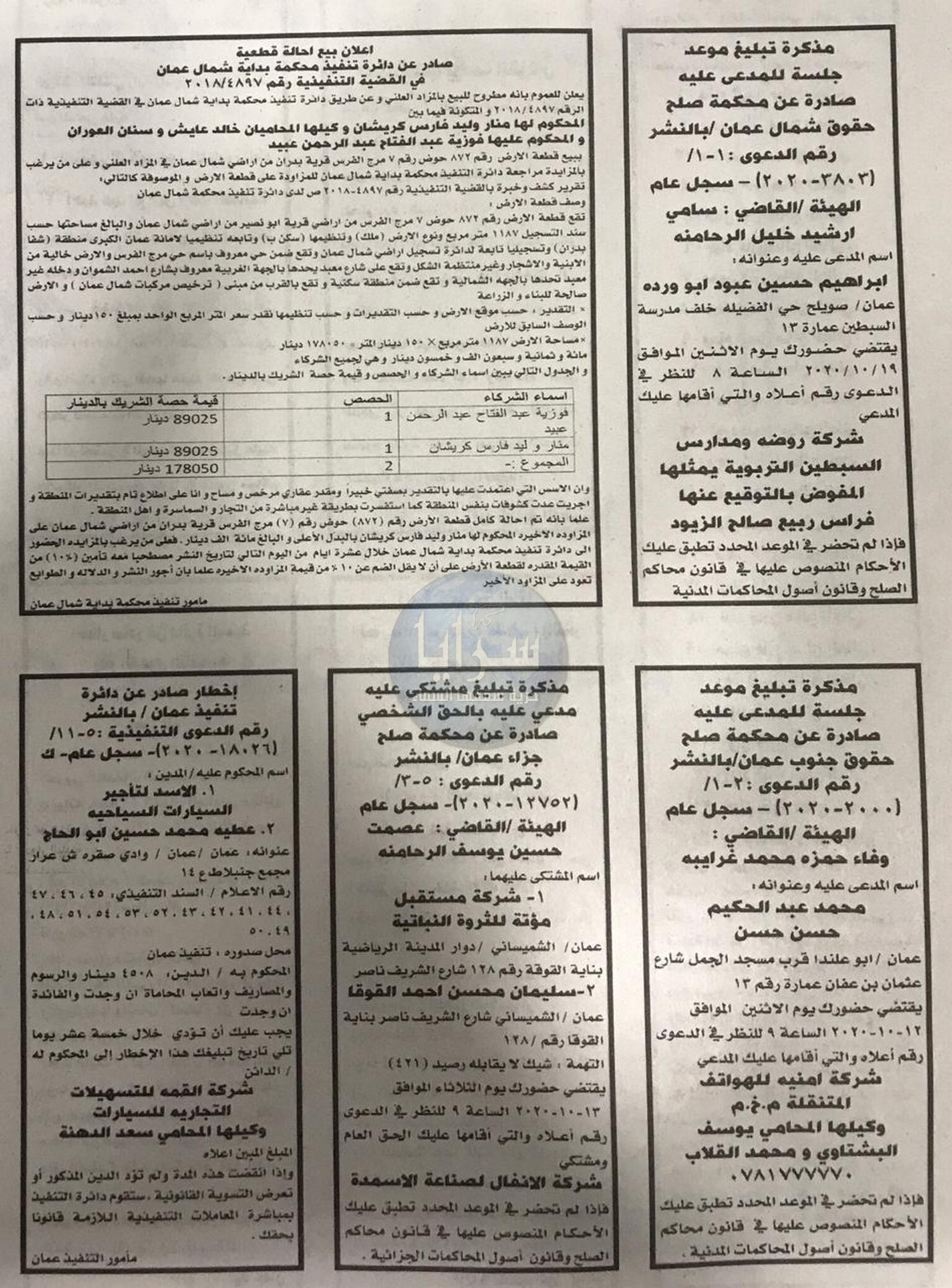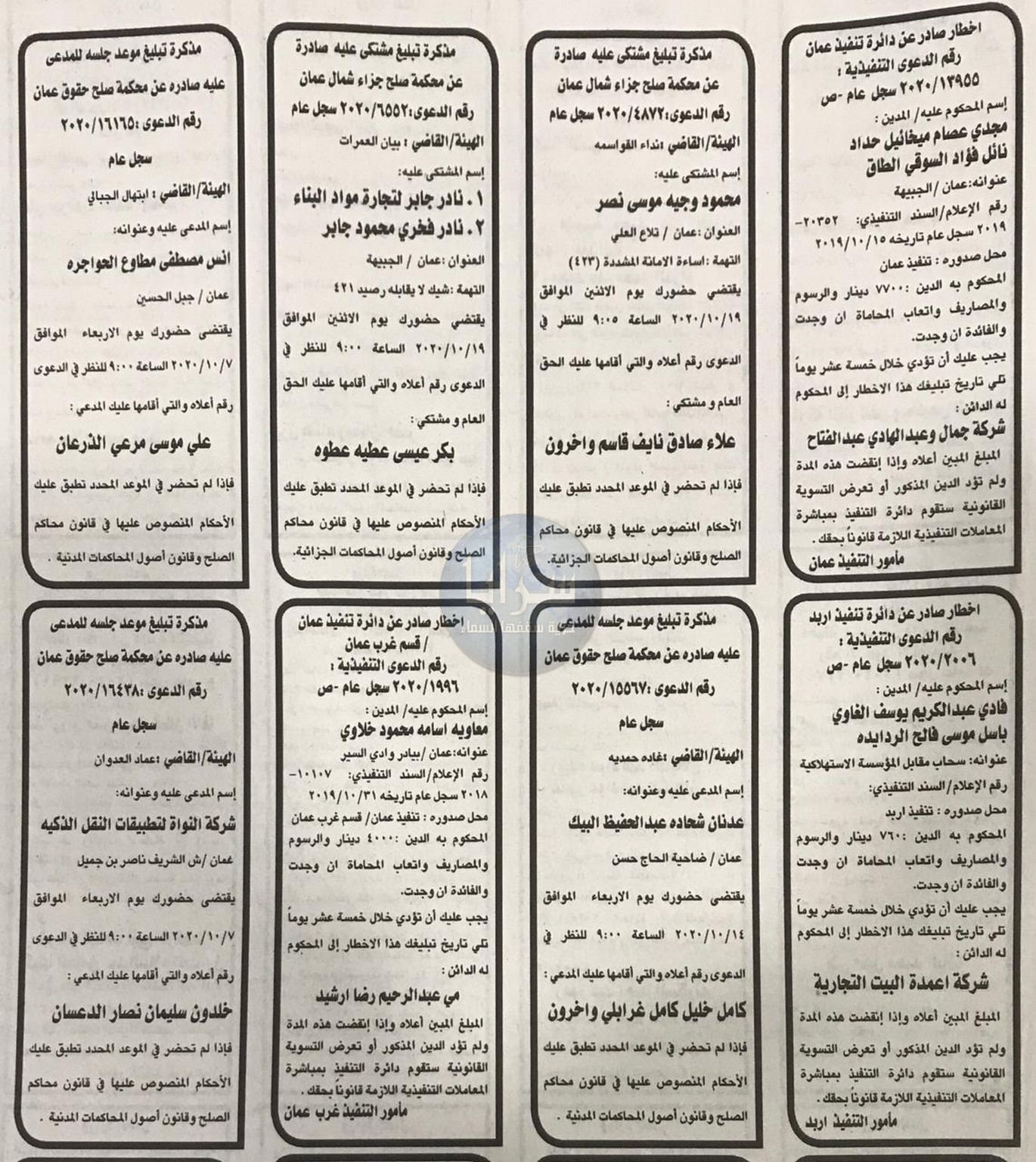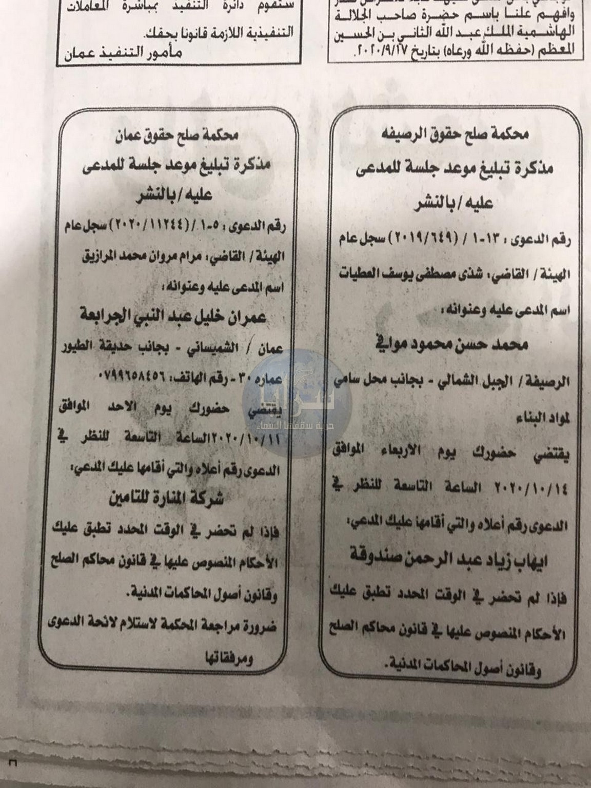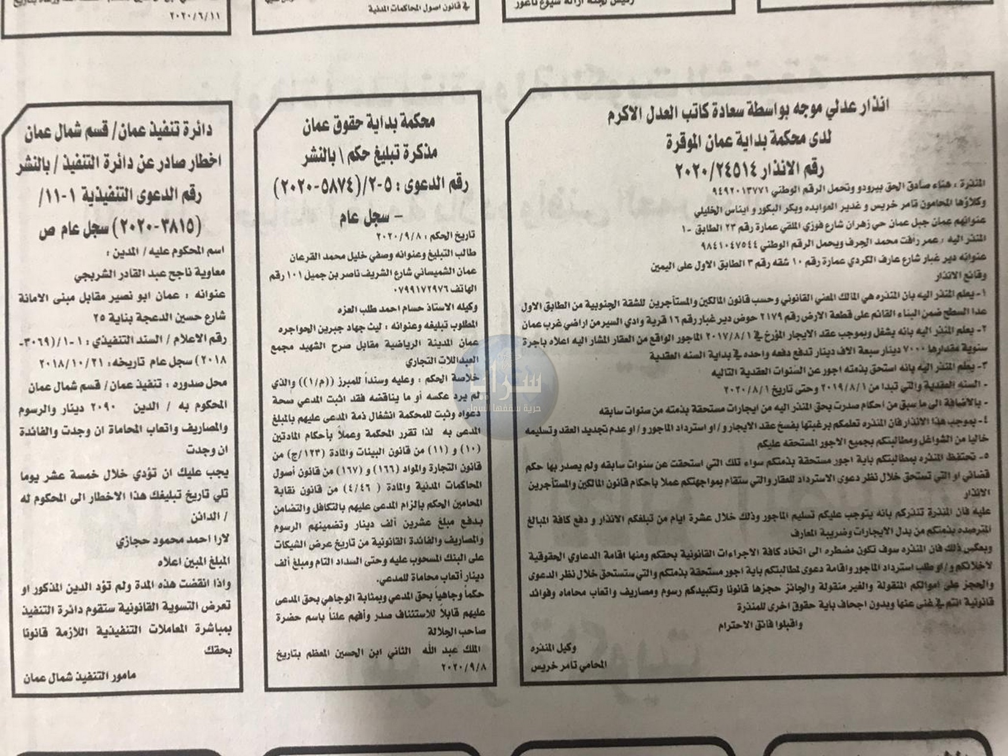 أصدرت أغلب المحاكم الاردنية بلاغات لأردنيين لحضور جلسات محكمة واعلانات لبيع عقارات بالمزاد العلني.