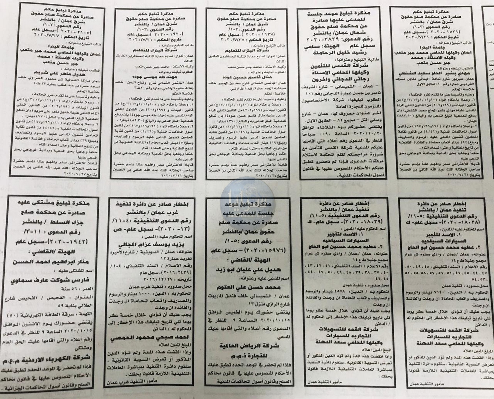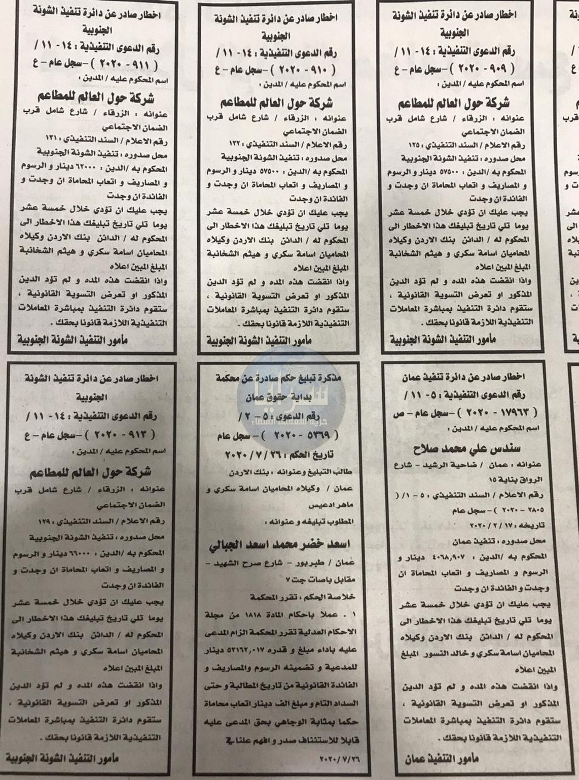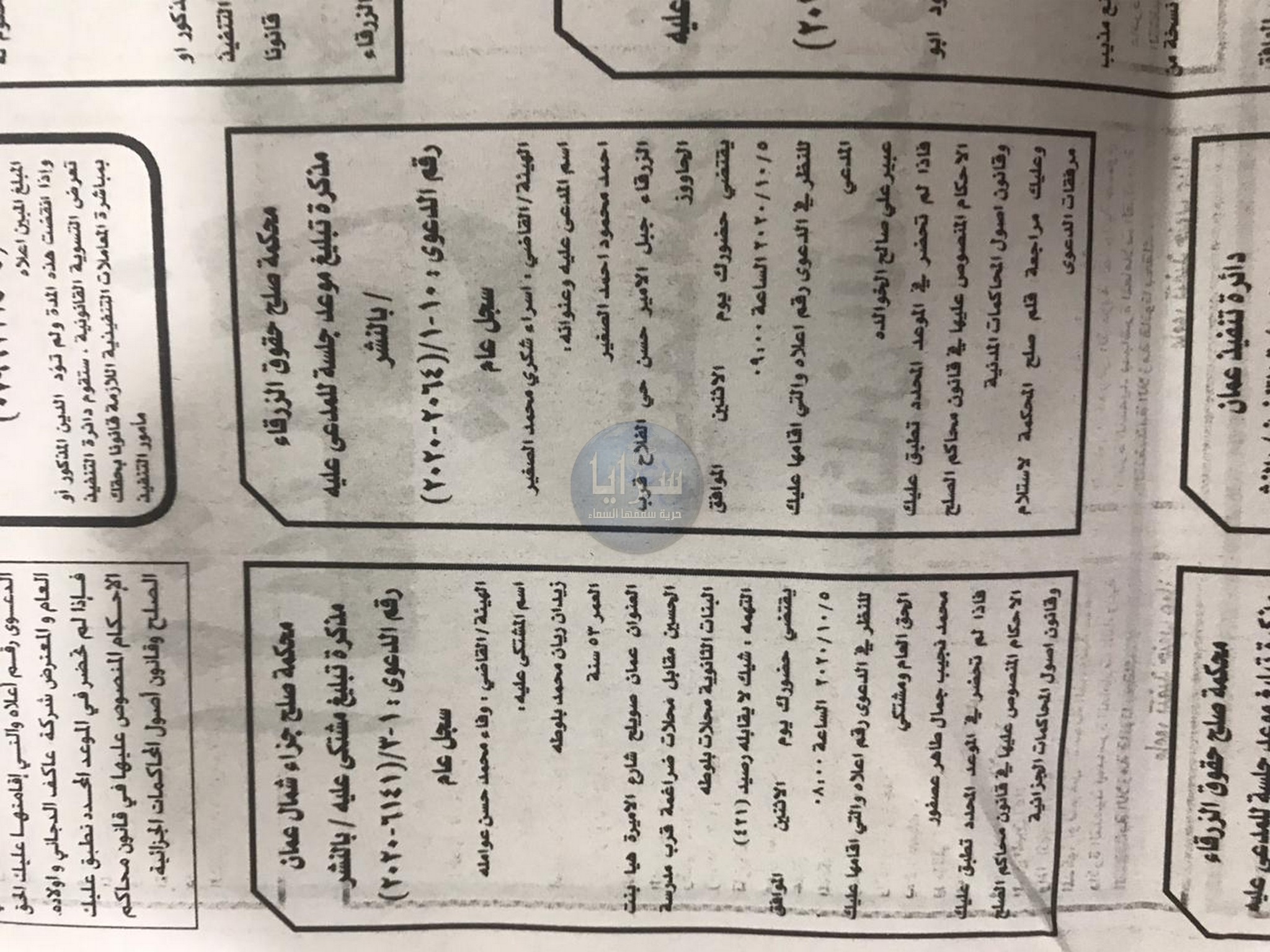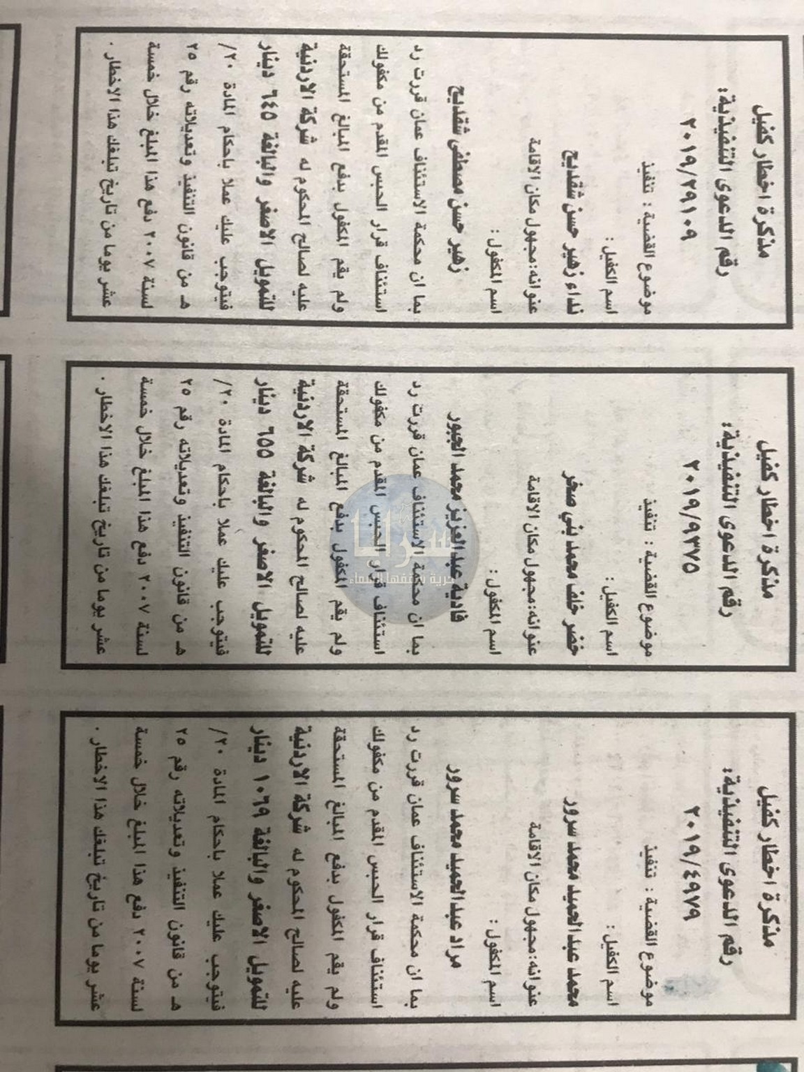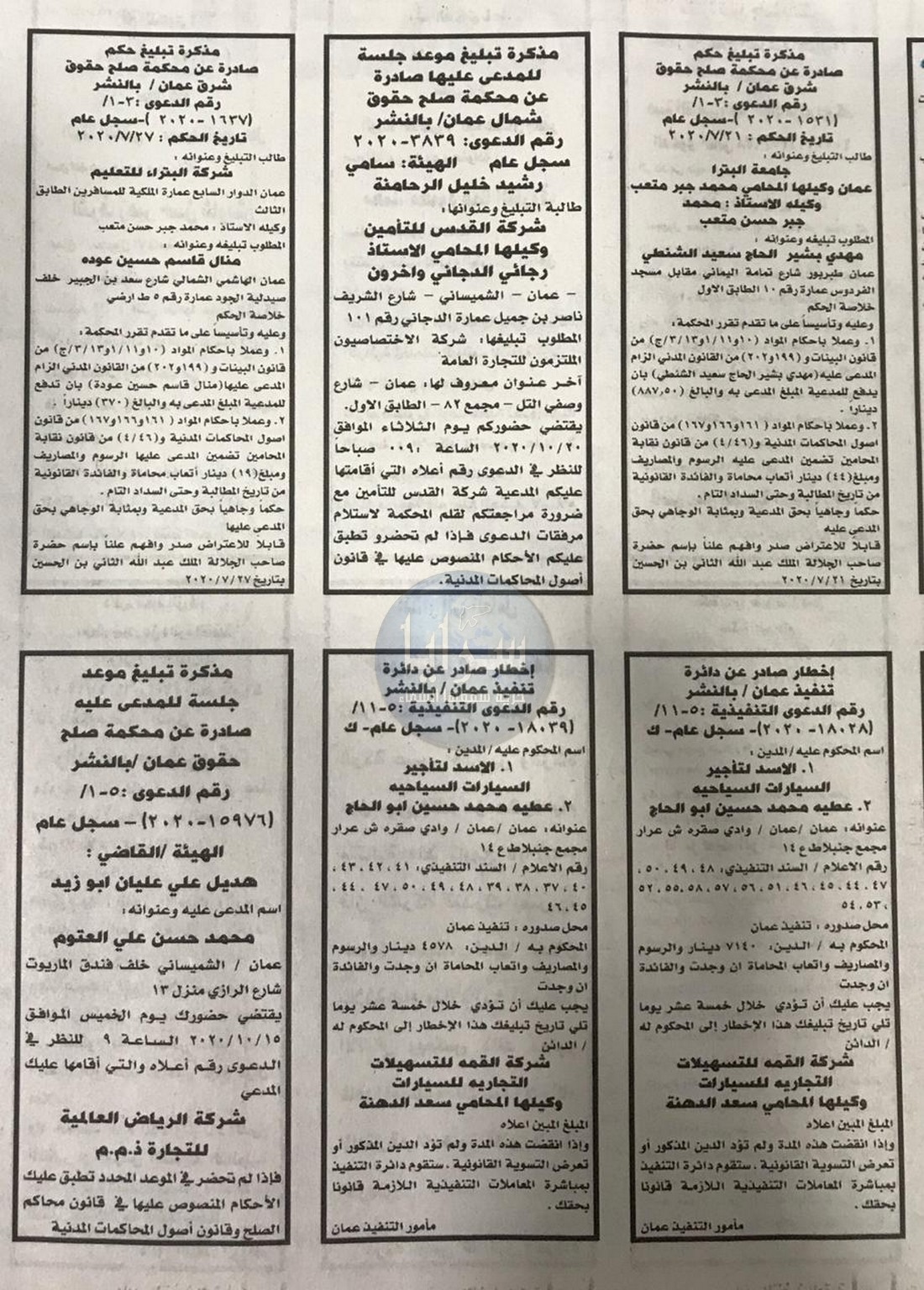 أصدرت أغلب المحاكم الاردنية بلاغات لأردنيين لحضور جلسات محكمة واعلانات لبيع عقارات بالمزاد العلني.