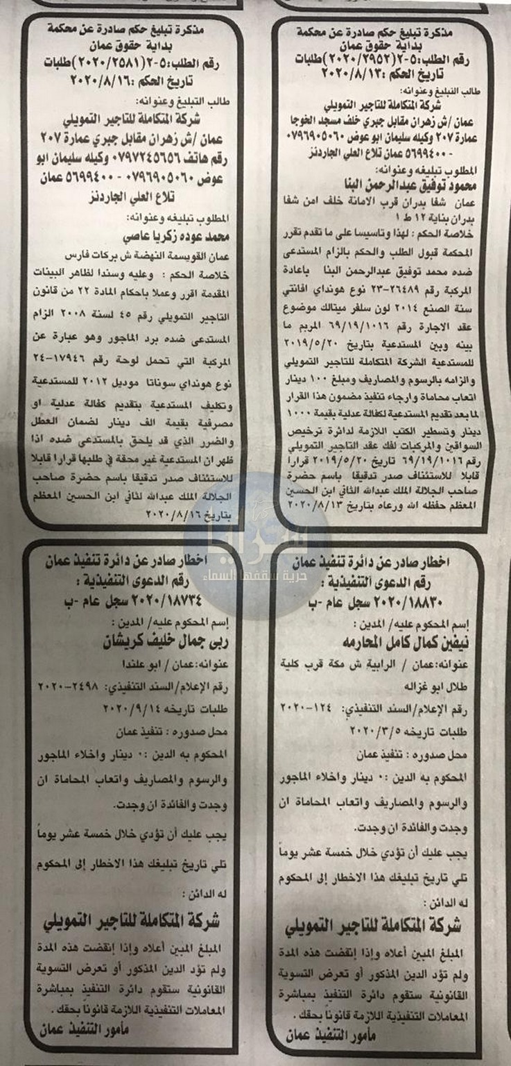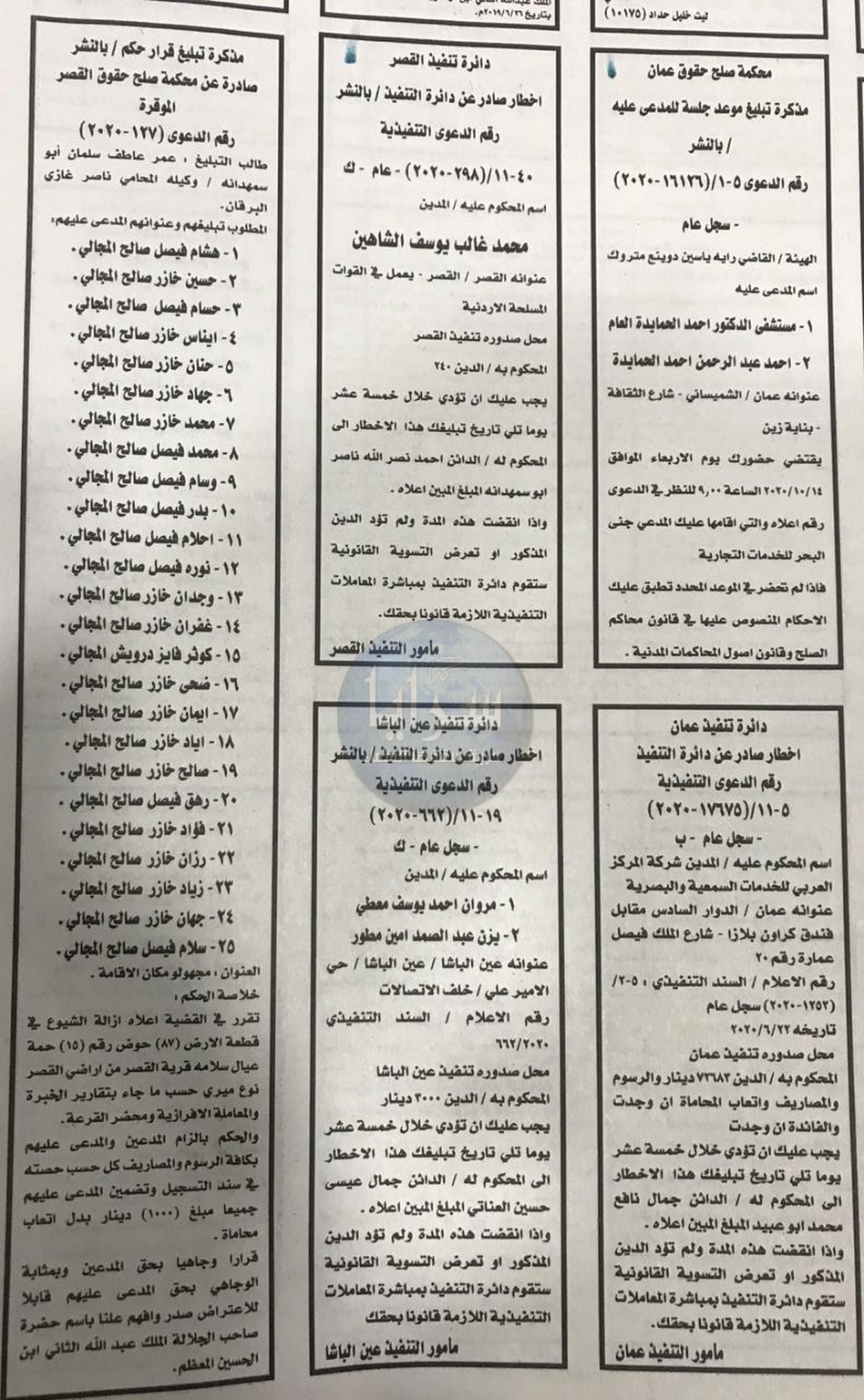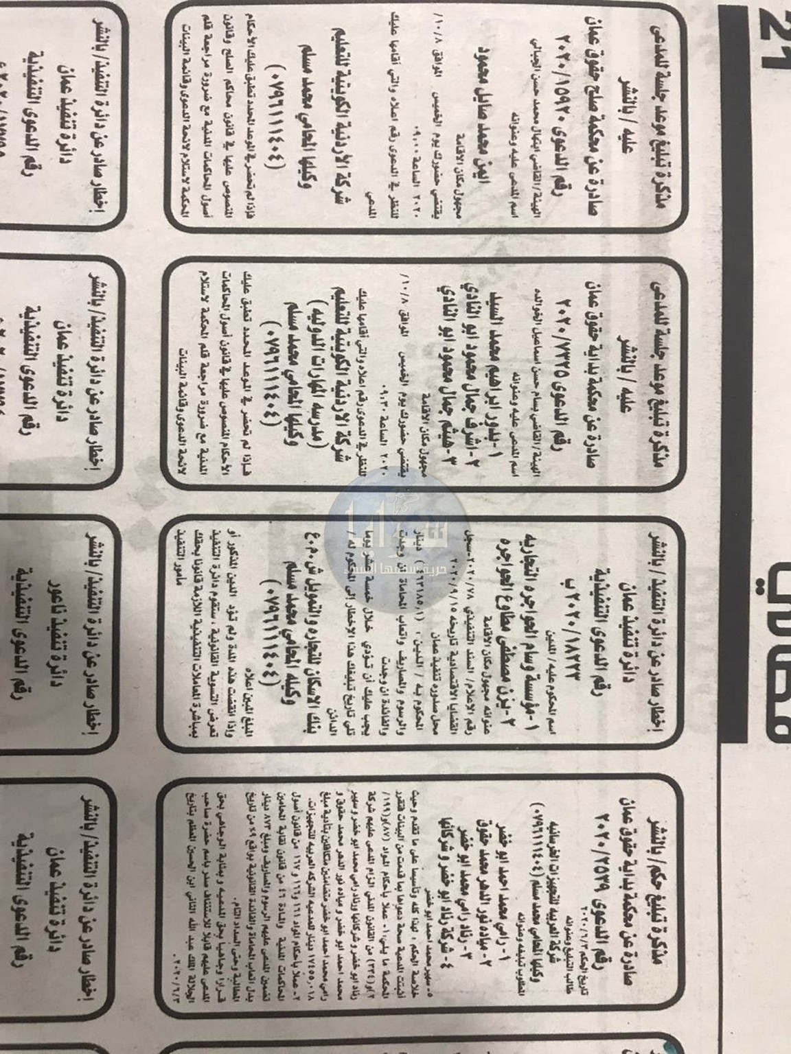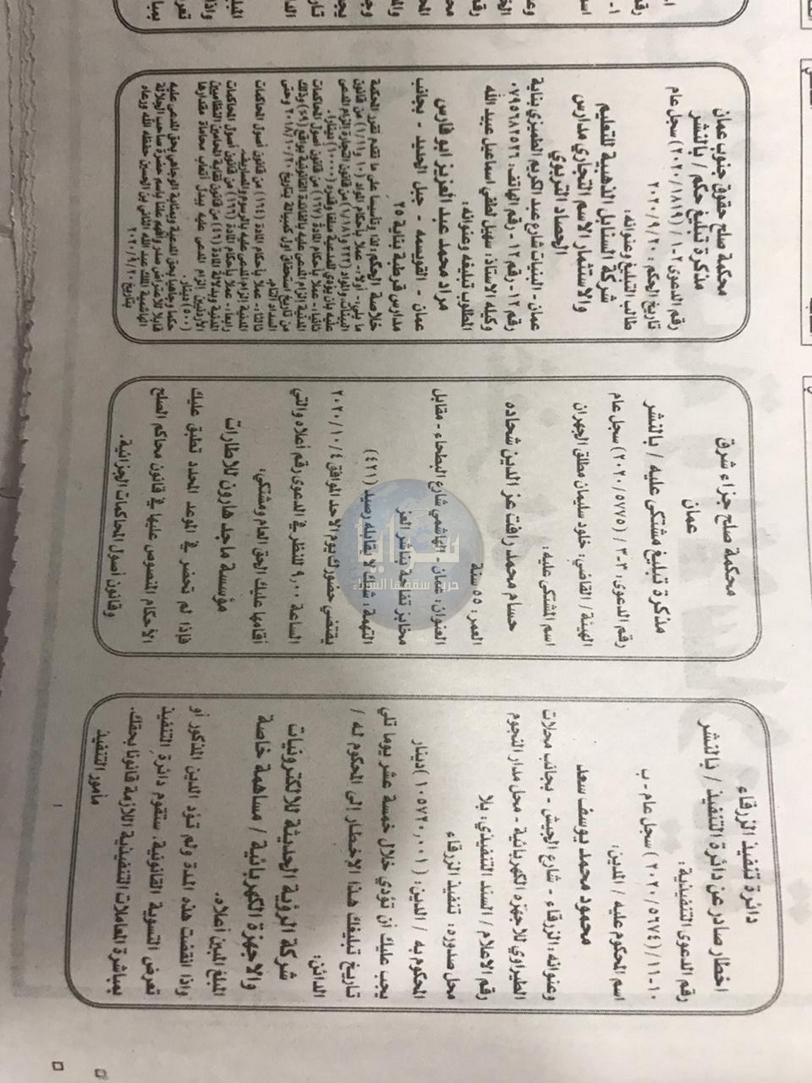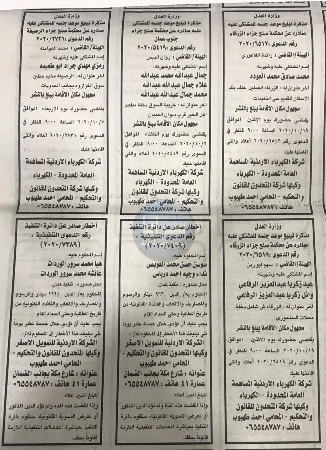 أصدرت أغلب المحاكم الاردنية بلاغات لأردنيين لحضور جلسات محكمة واعلانات لبيع عقارات بالمزاد العلني.