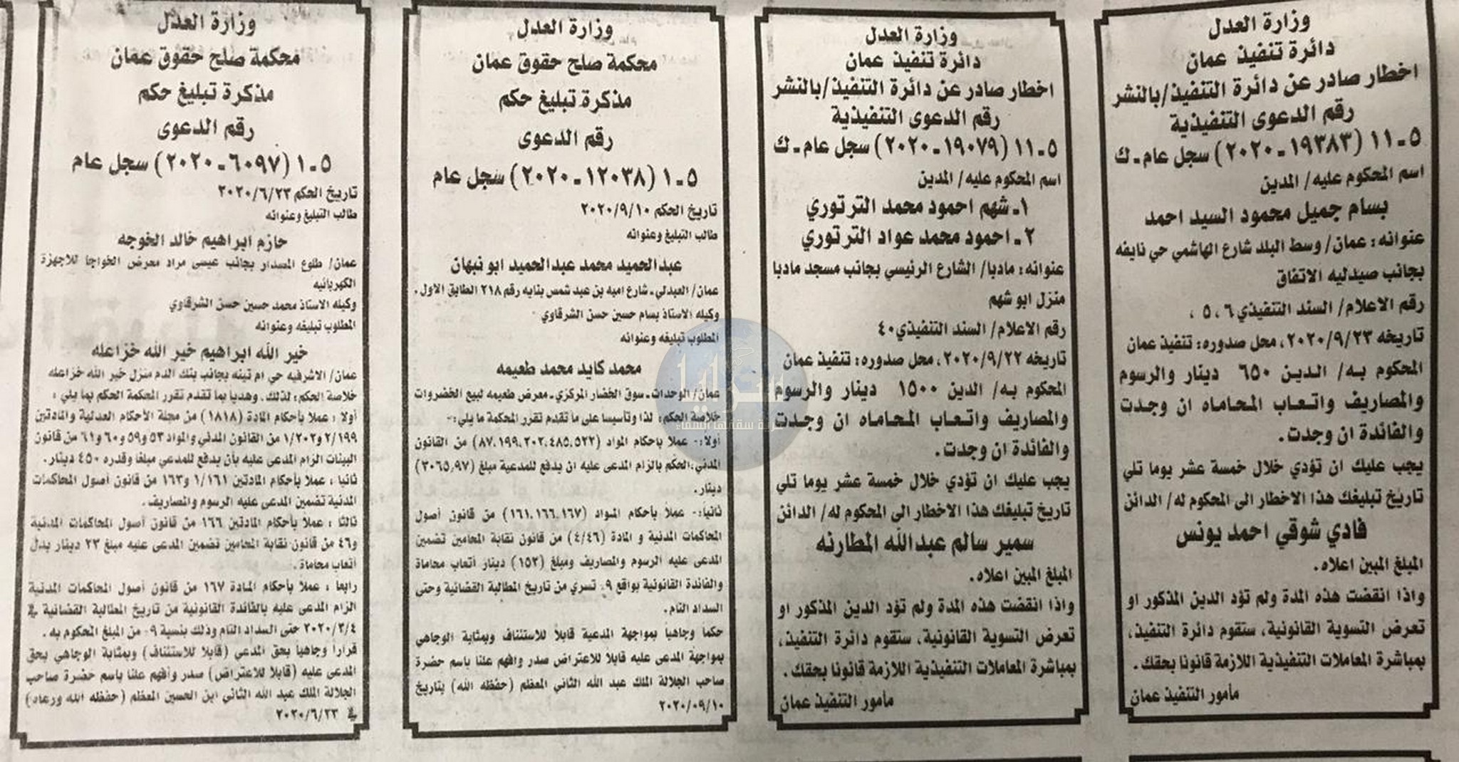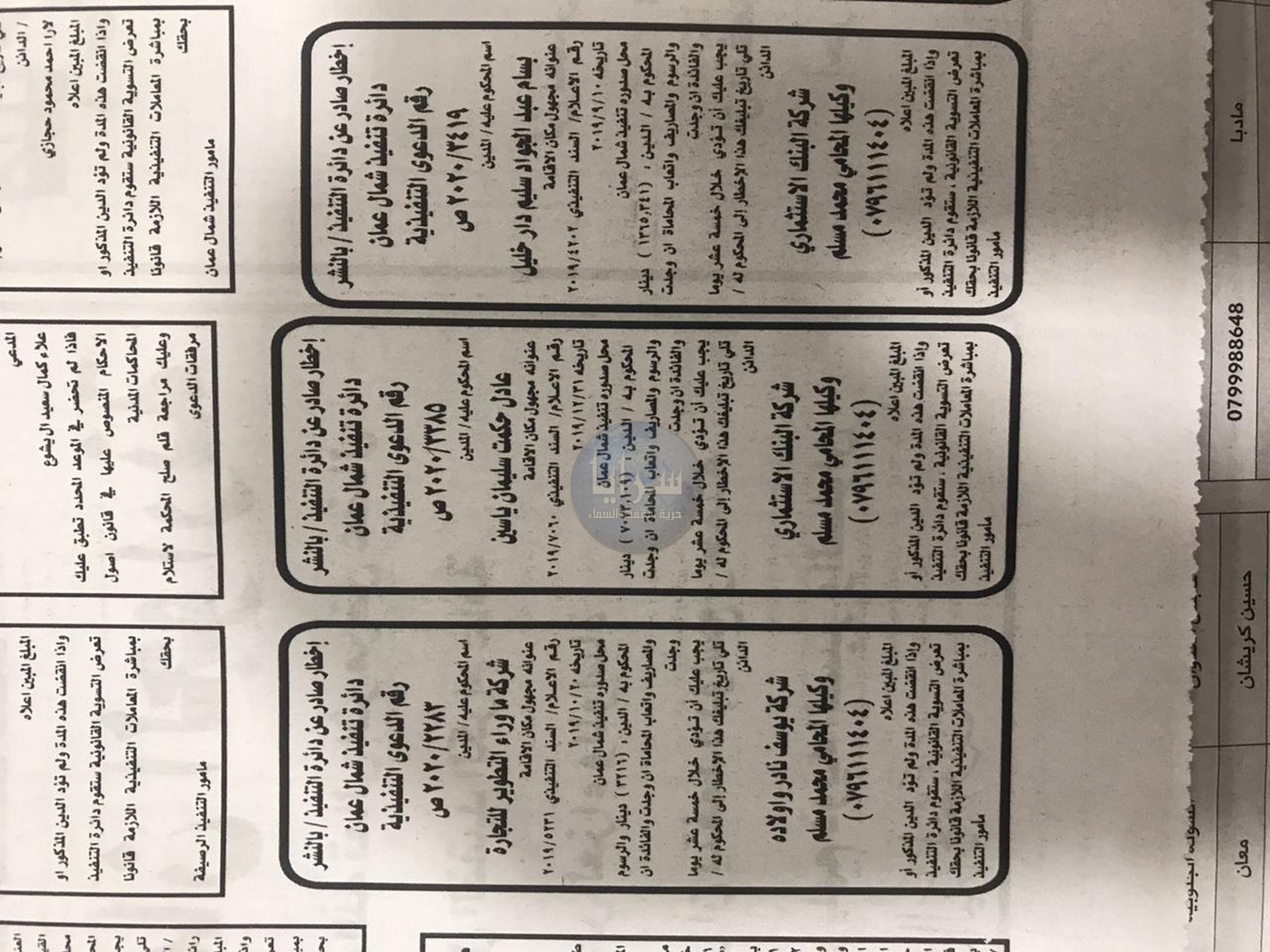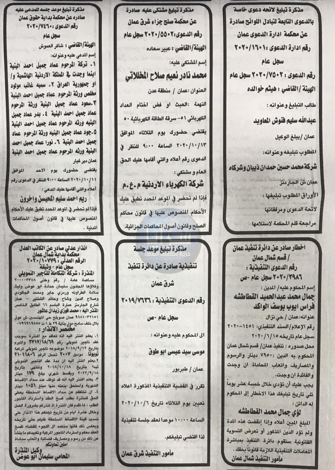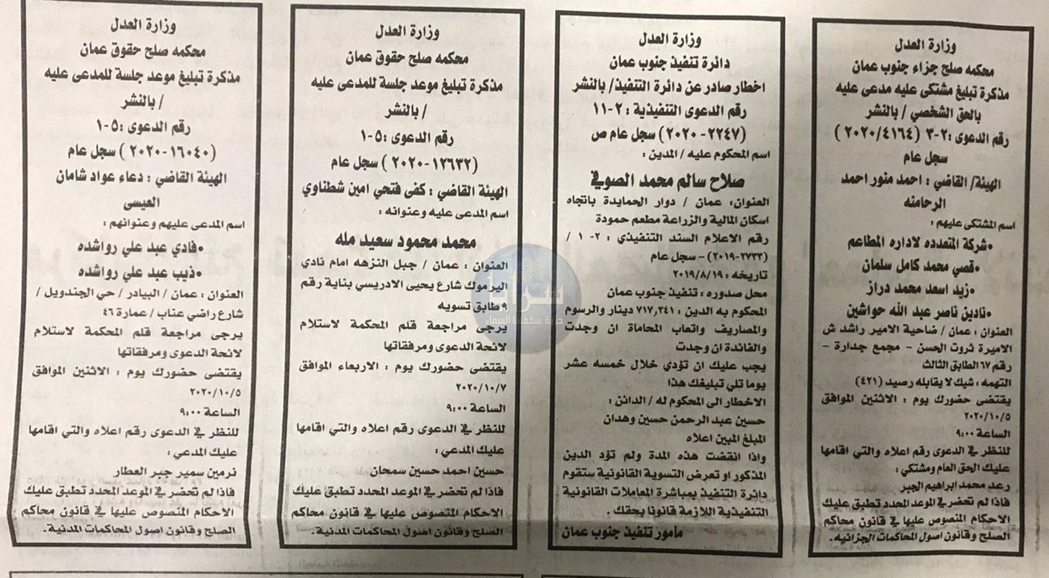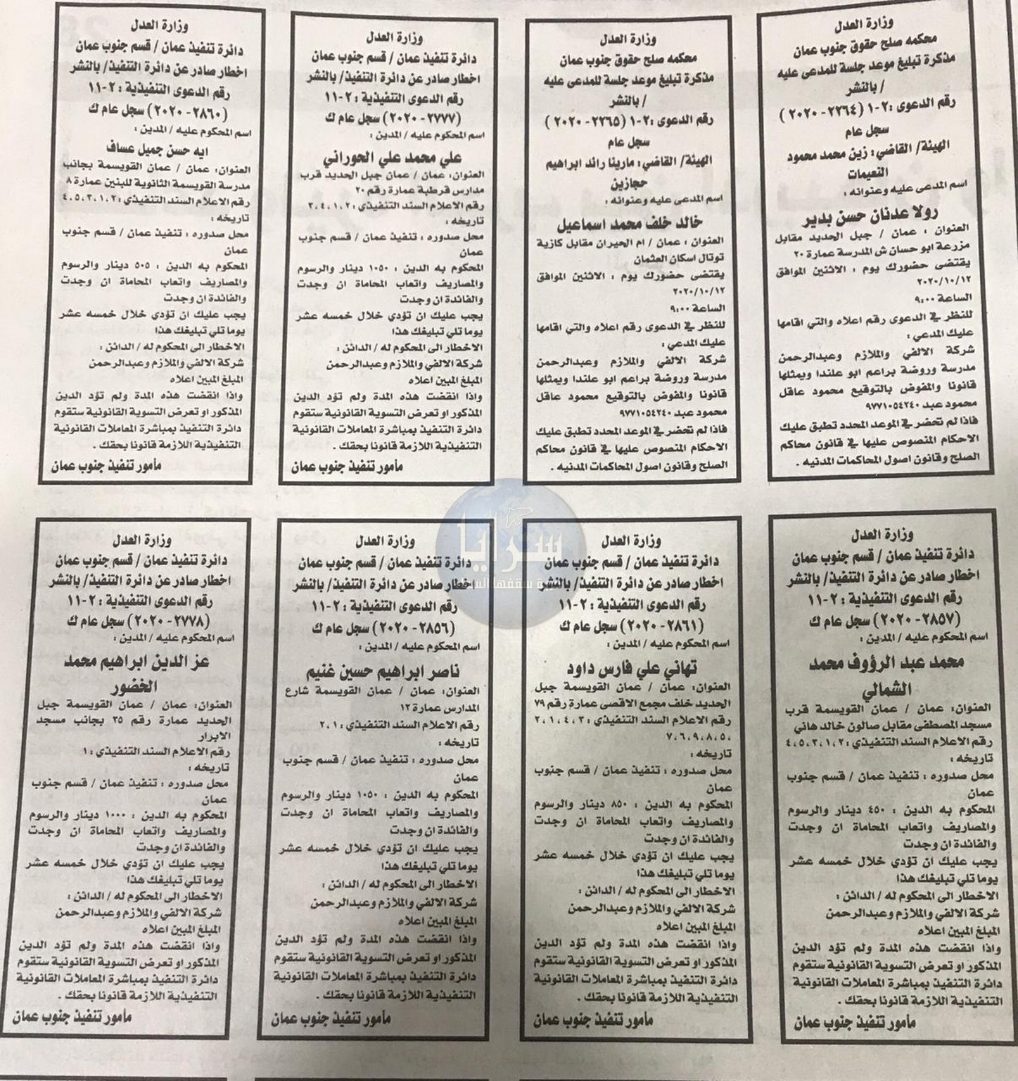 أصدرت أغلب المحاكم الاردنية بلاغات لأردنيين لحضور جلسات محكمة واعلانات لبيع عقارات بالمزاد العلني.