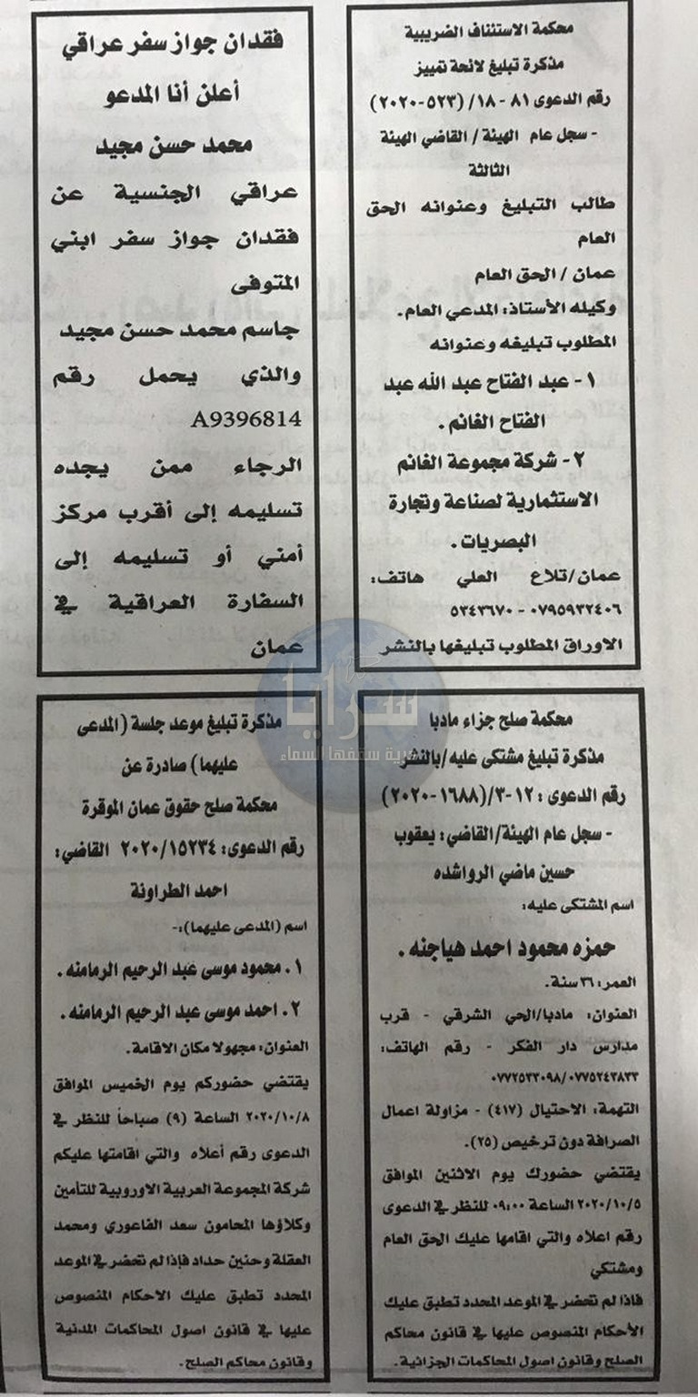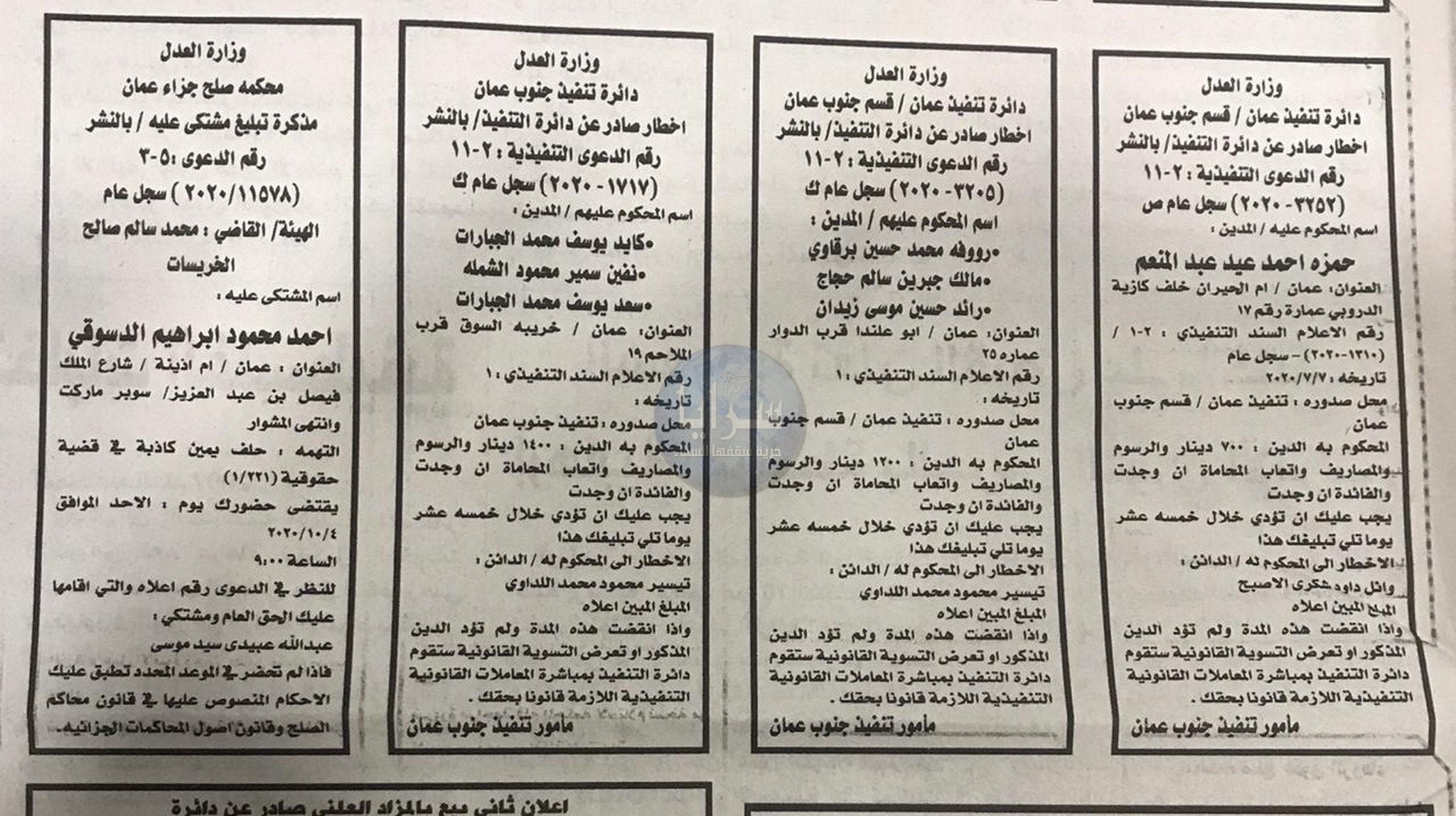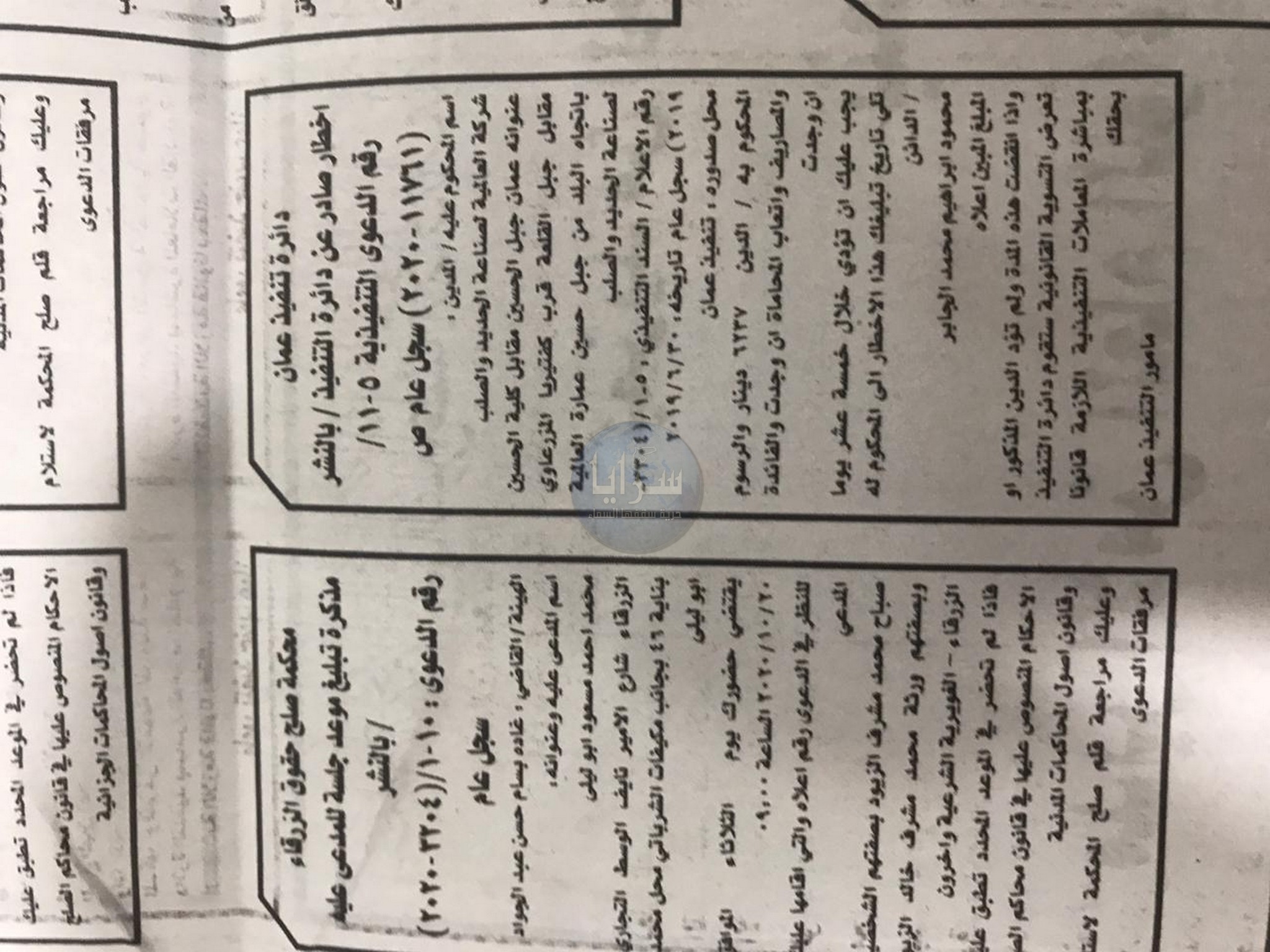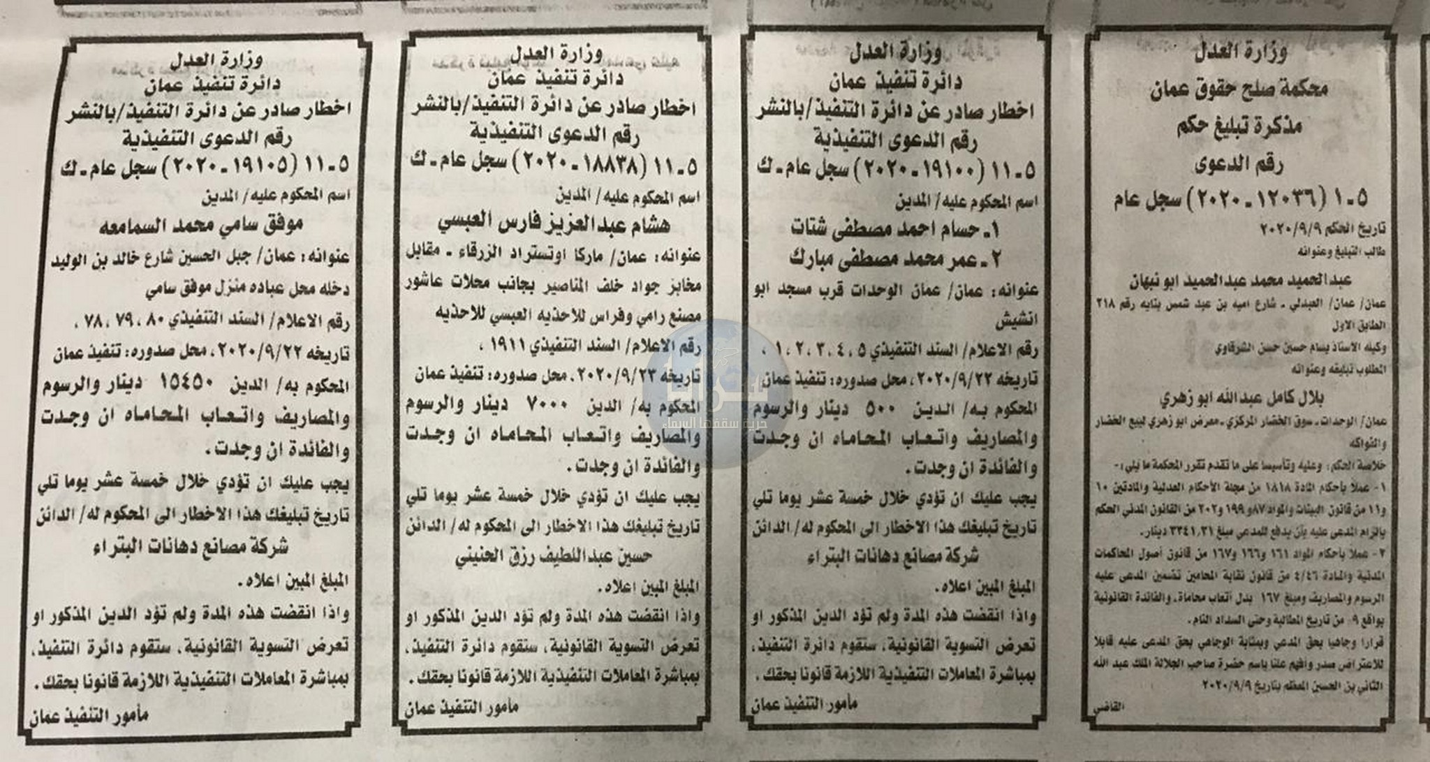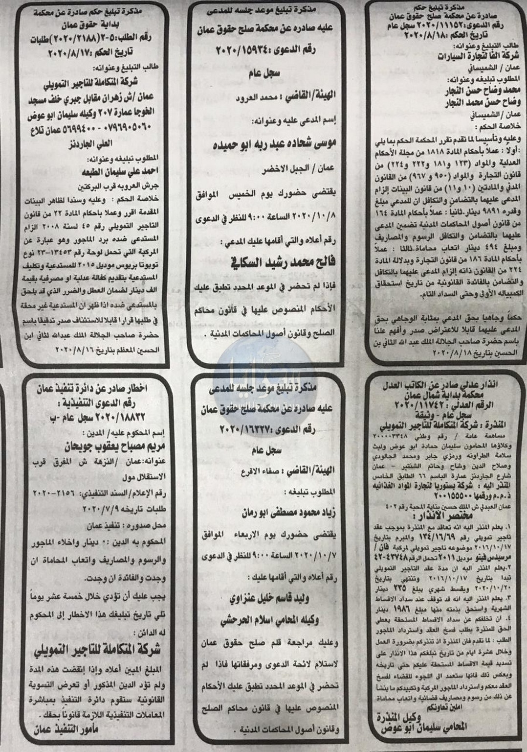 أصدرت أغلب المحاكم الاردنية بلاغات لأردنيين لحضور جلسات محكمة واعلانات لبيع عقارات بالمزاد العلني.