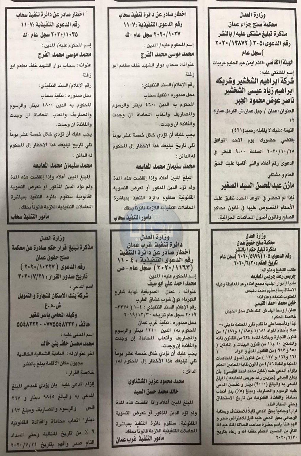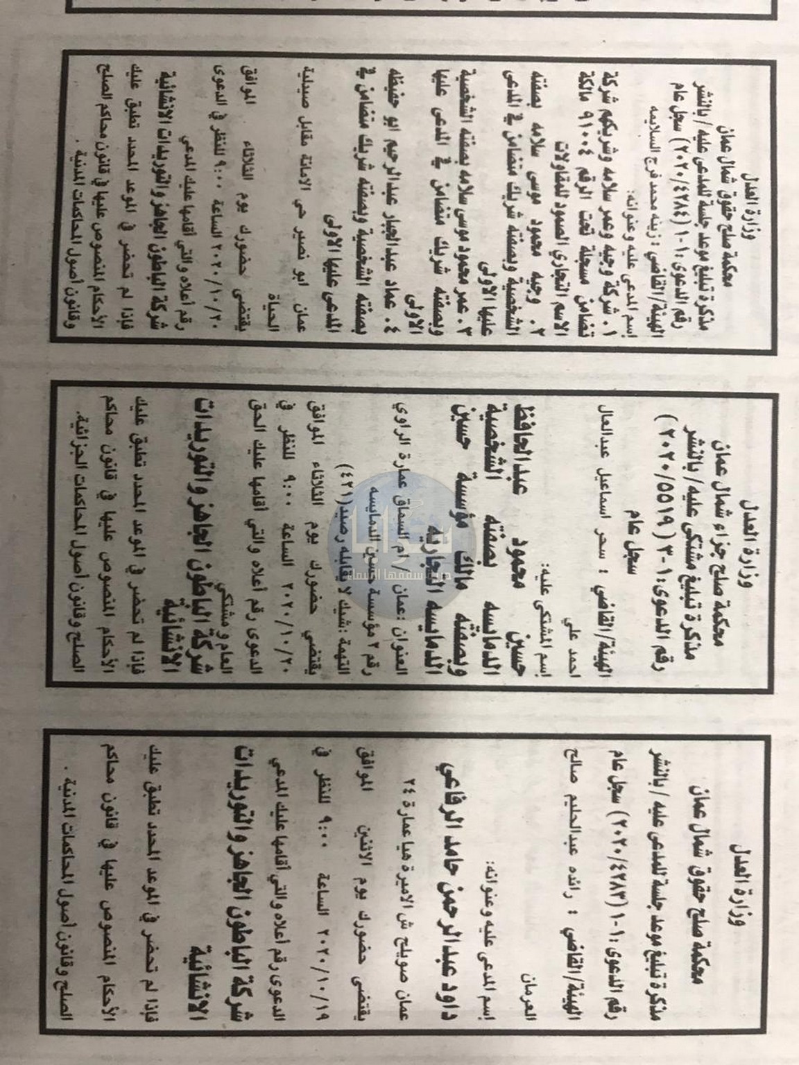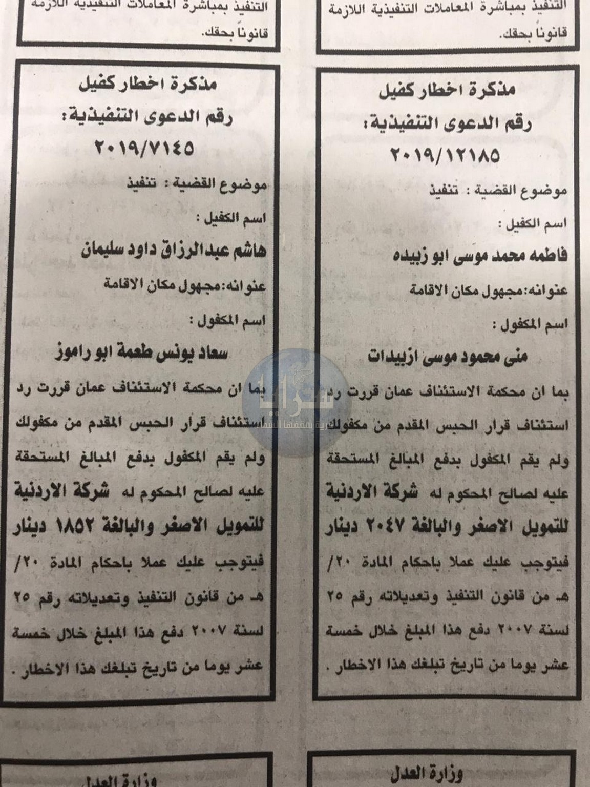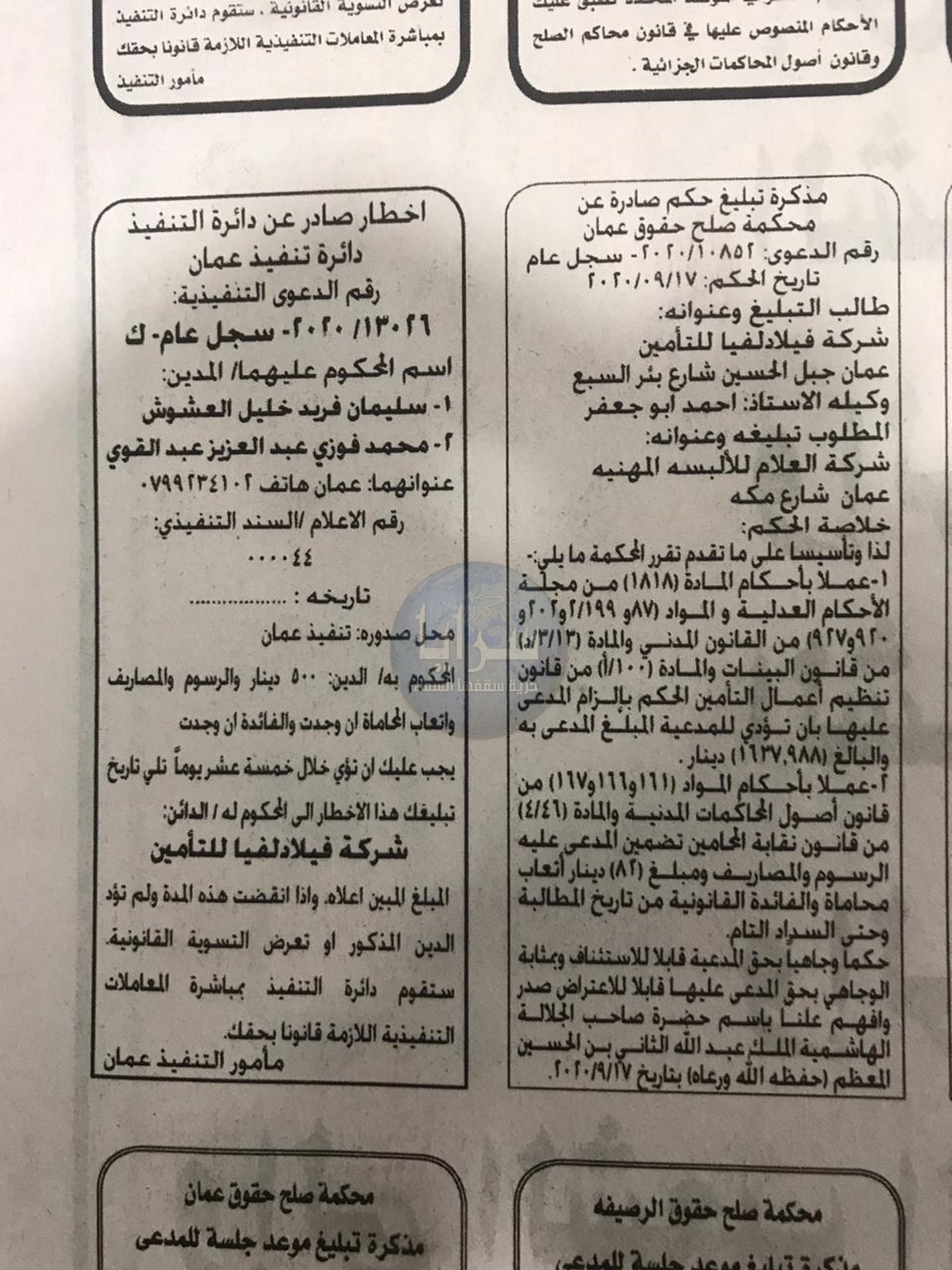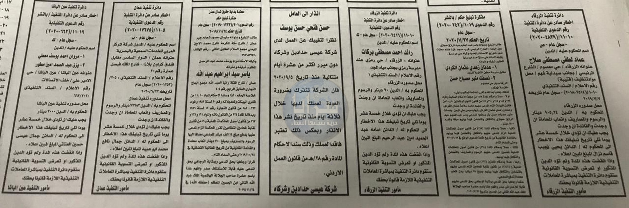 أصدرت أغلب المحاكم الاردنية بلاغات لأردنيين لحضور جلسات محكمة واعلانات لبيع عقارات بالمزاد العلني.