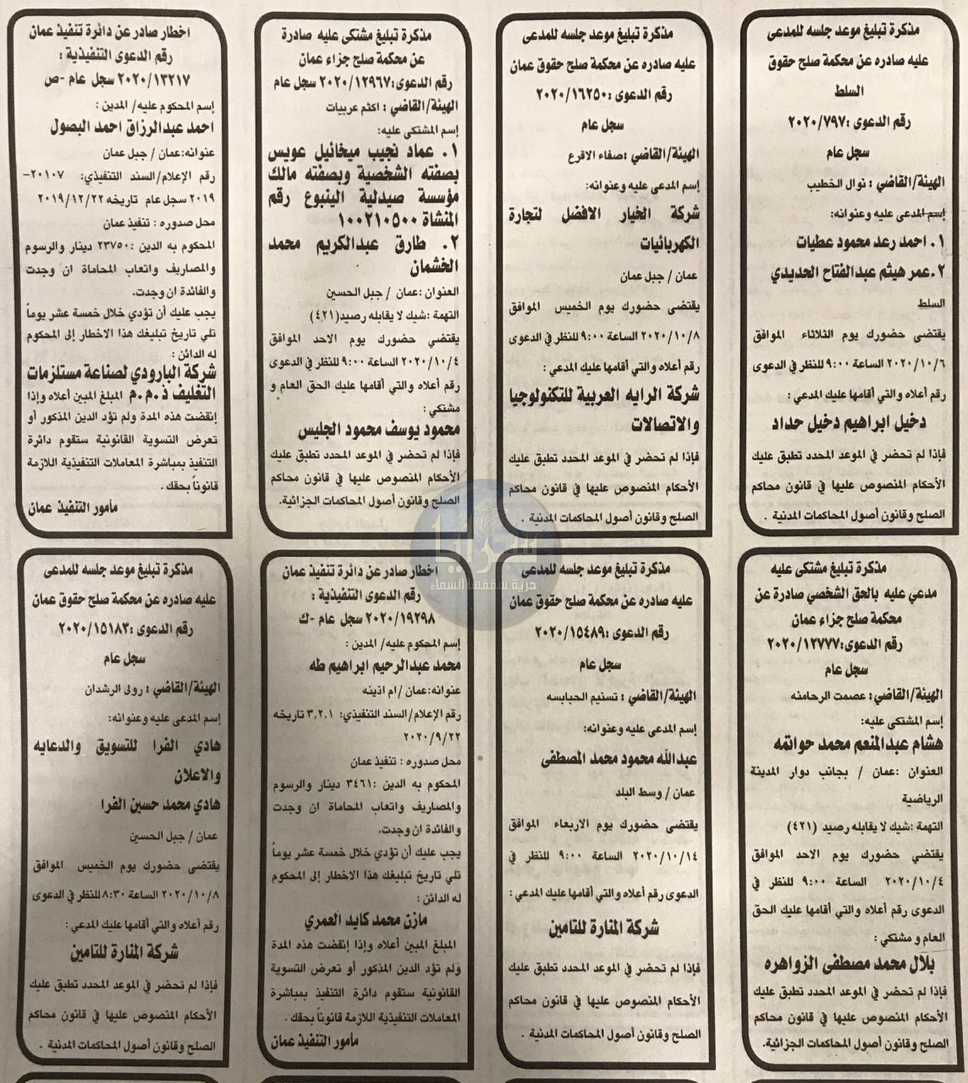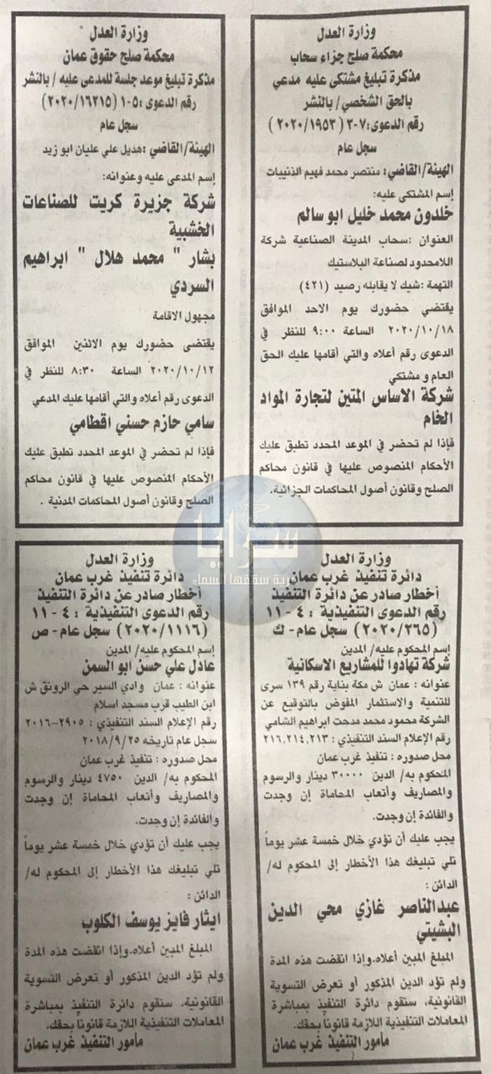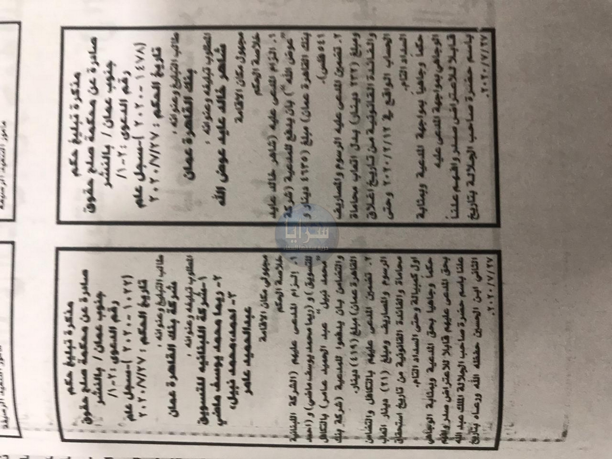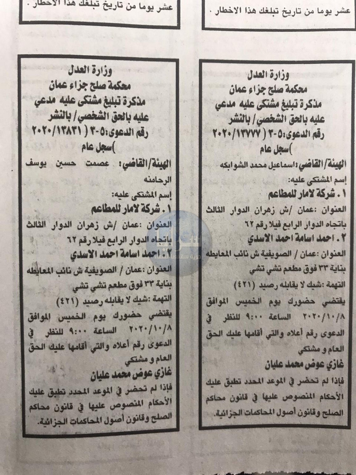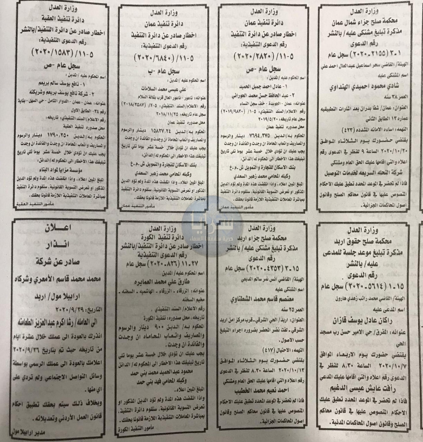 أصدرت أغلب المحاكم الاردنية بلاغات لأردنيين لحضور جلسات محكمة واعلانات لبيع عقارات بالمزاد العلني.