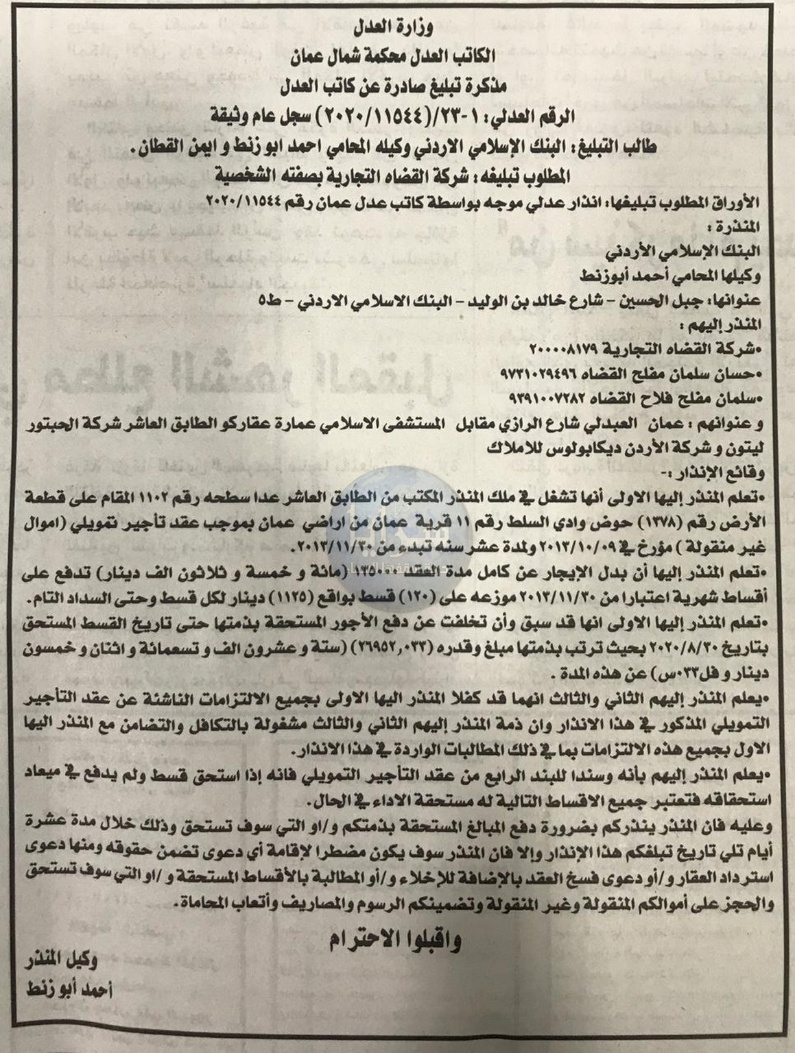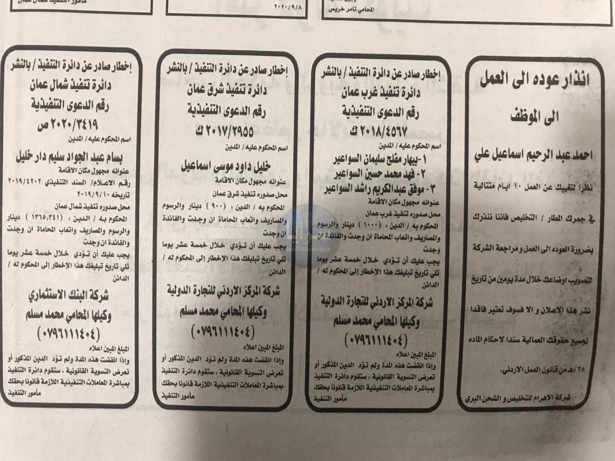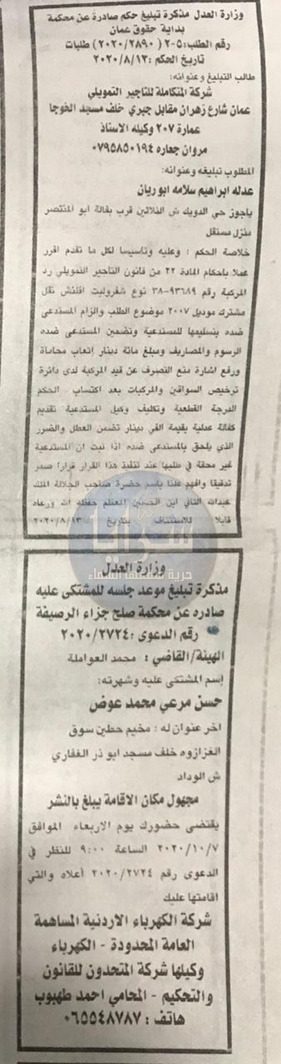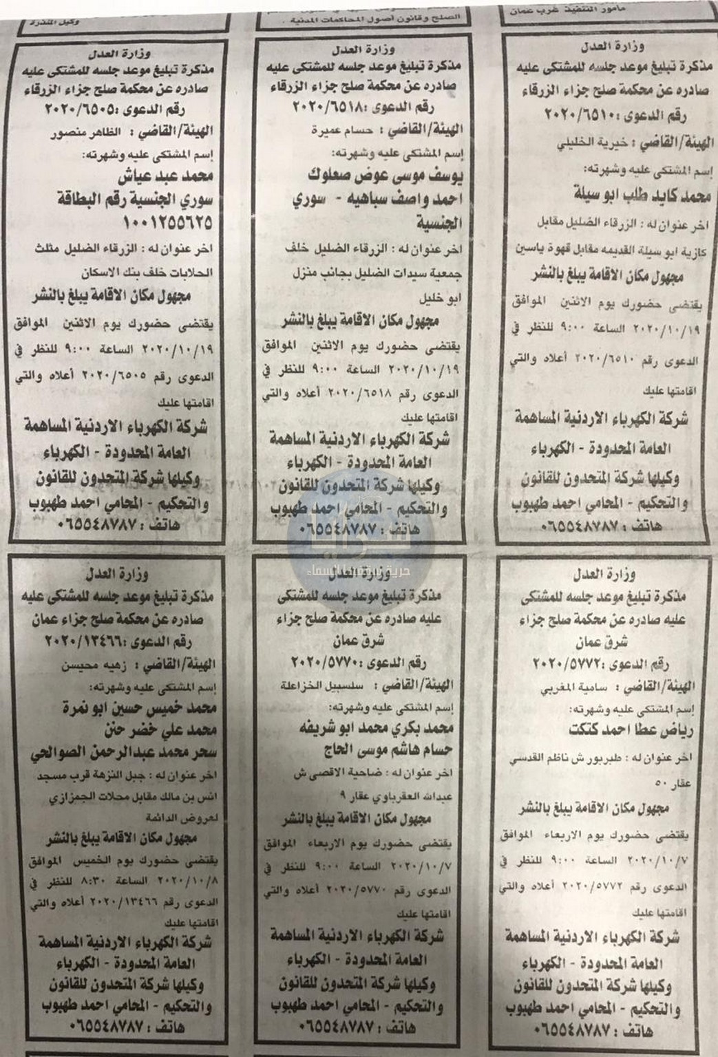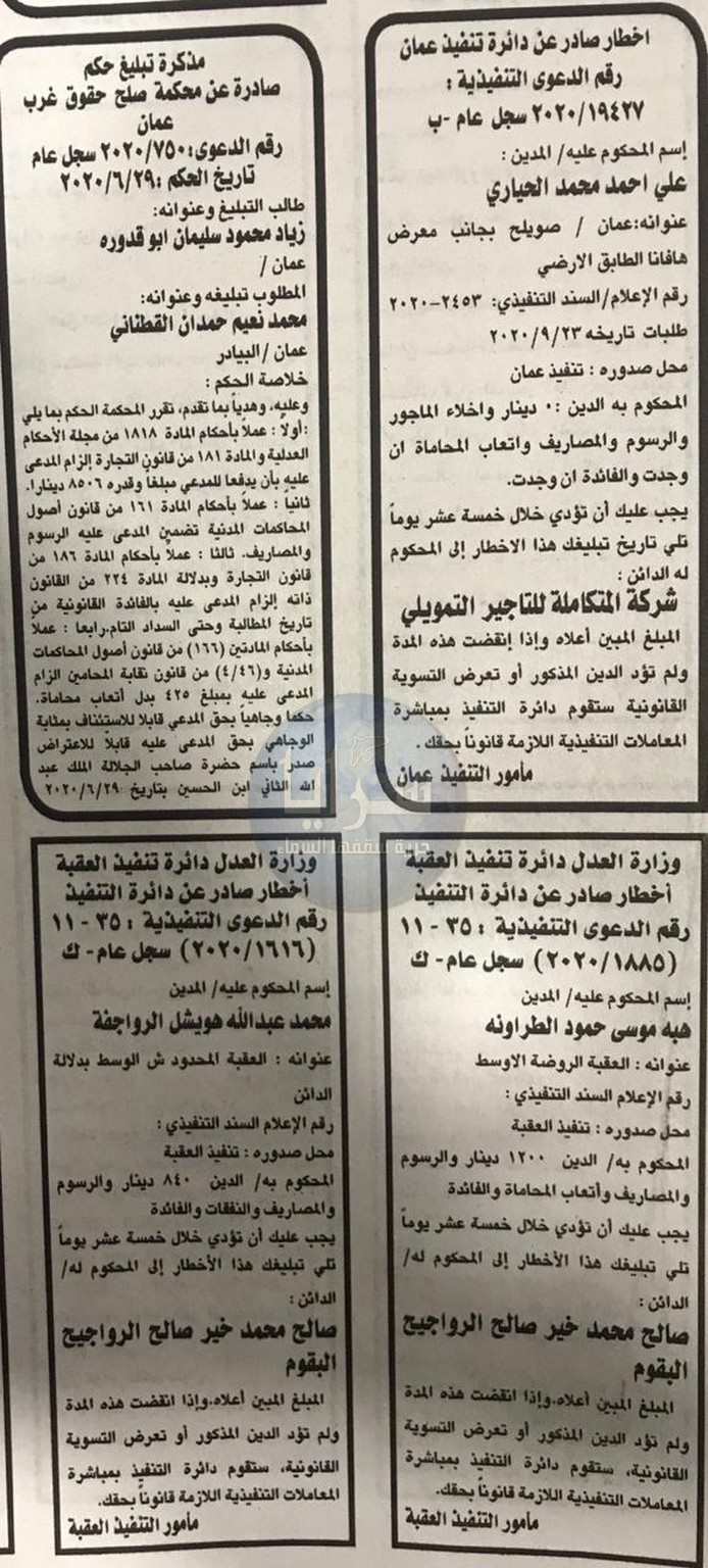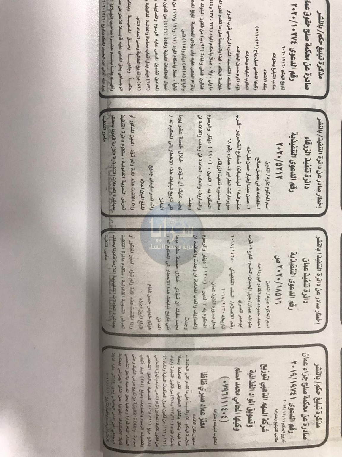 أصدرت أغلب المحاكم الاردنية بلاغات لأردنيين لحضور جلسات محكمة واعلانات لبيع عقارات بالمزاد العلني.
