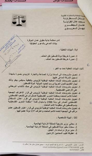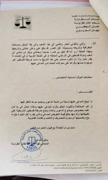 أقام مواطن اردني دعوى قضائية امام المحاكم الأردنية طالب فيها شركة جوجل بتعويض قدره مليار دينار اردني بسبب الضرر الواقع على فلسطين جراء إزالة اسم فلسطين من خرائط جوجل.