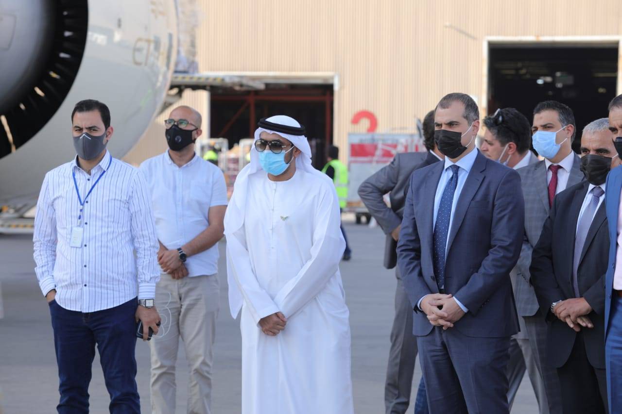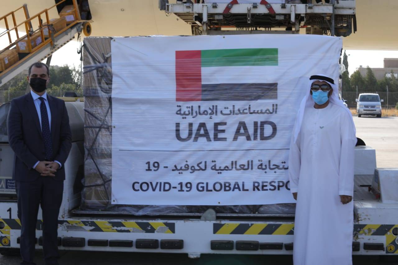 وذكر سعادته في هذا الصدد أن هذه المساعدات هي الثانية التي ترسلها دولة الإمارات إلى الأردن، حيث سبق لها وأن أرسلت لها طائرة حملت 12.4 طناً من الإمدادات والمستلزمات الطبية خلال في شهر أغسطس الماضي، ساهمت في توفير الدعم للعاملين في القطاع الطبي، معربا عن أمله في أن تساهم الشحنة الجديدة من المساعدات في توفير المزيد من الحماية للعاملين في الرعاية الصحية ولا سيما في الخطوط الأمامية لمواجهة الجائحة".