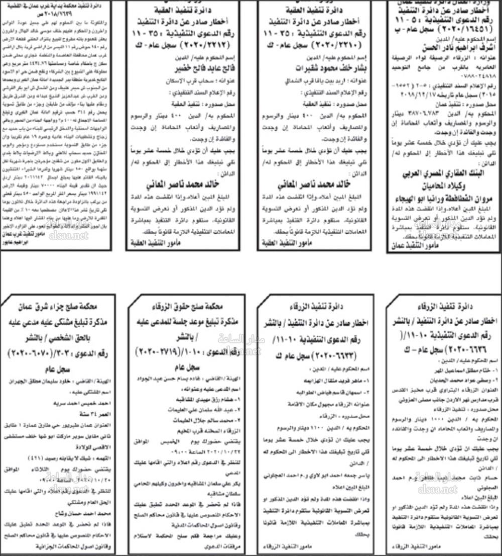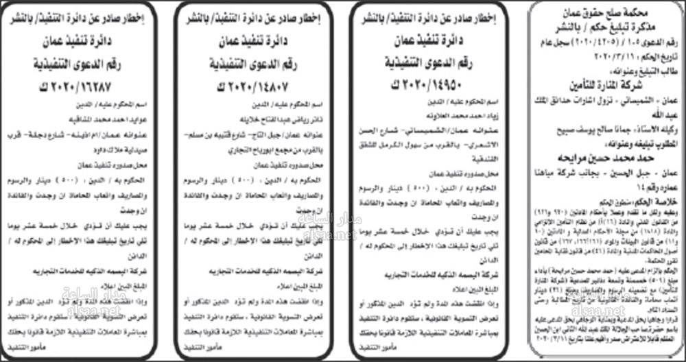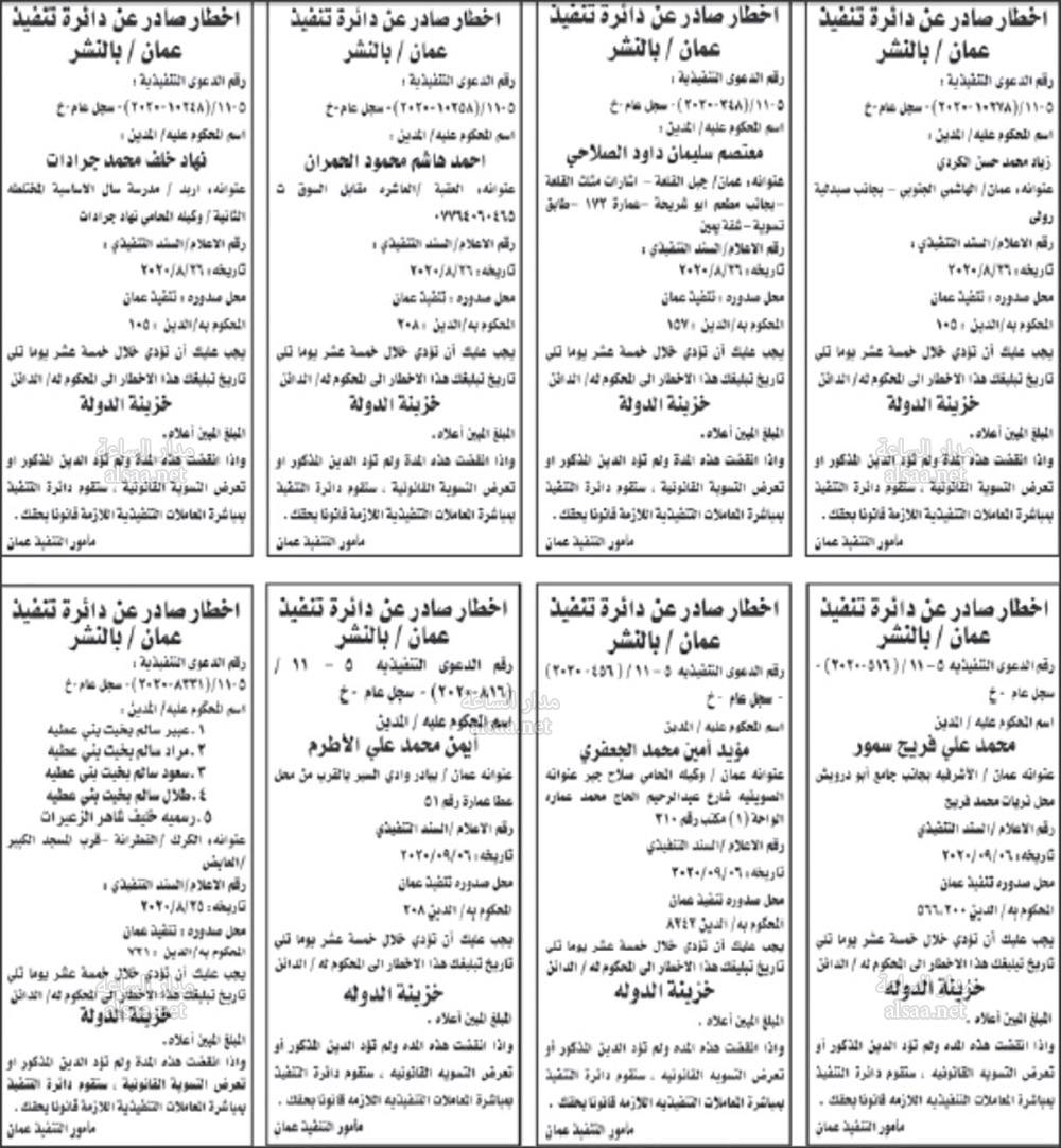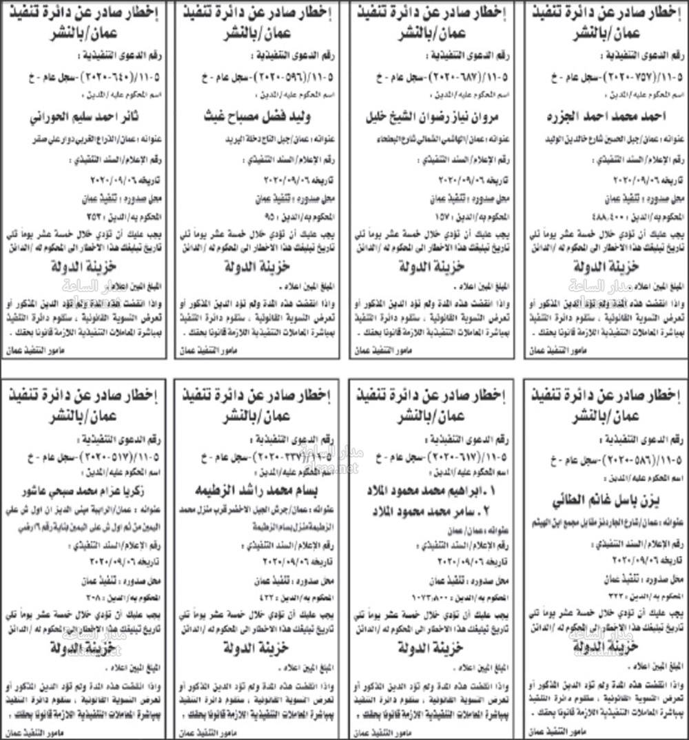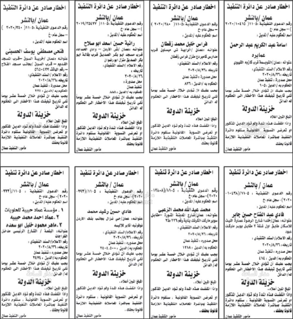 كما صدرت اخطارات عن دوائر التنفيذ في المحاكم.