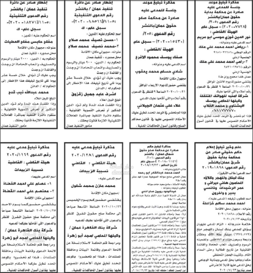 إعلانات قضائية.. راجعوا المحاكم (أسماء)