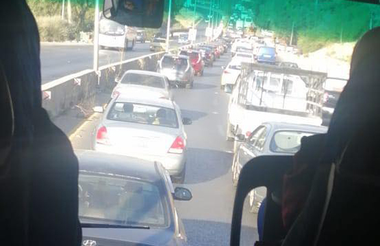 وبينوا ان ازمة السير اشتدت بين نقطة "سيل جرش" وجسر سلحوب.