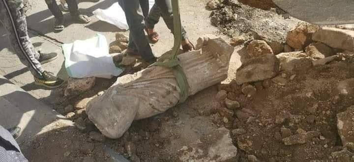 وأظهرت صور جرى تداولها لحظة إخراج التمثال وتجمهر عدد من عمال الأمانة حوله.