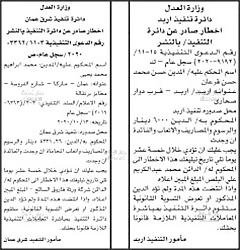 كما صدرت اخطارات عن دوائر التنفيذ في المحاكم.