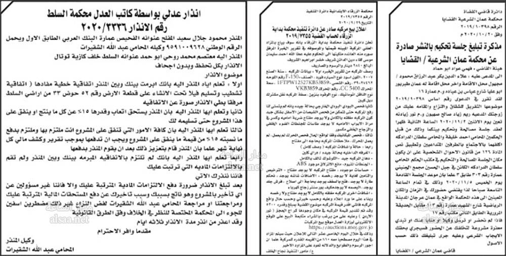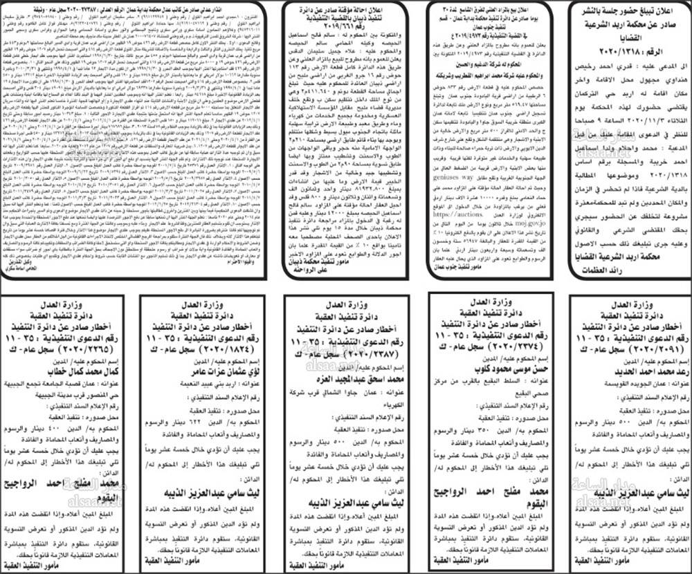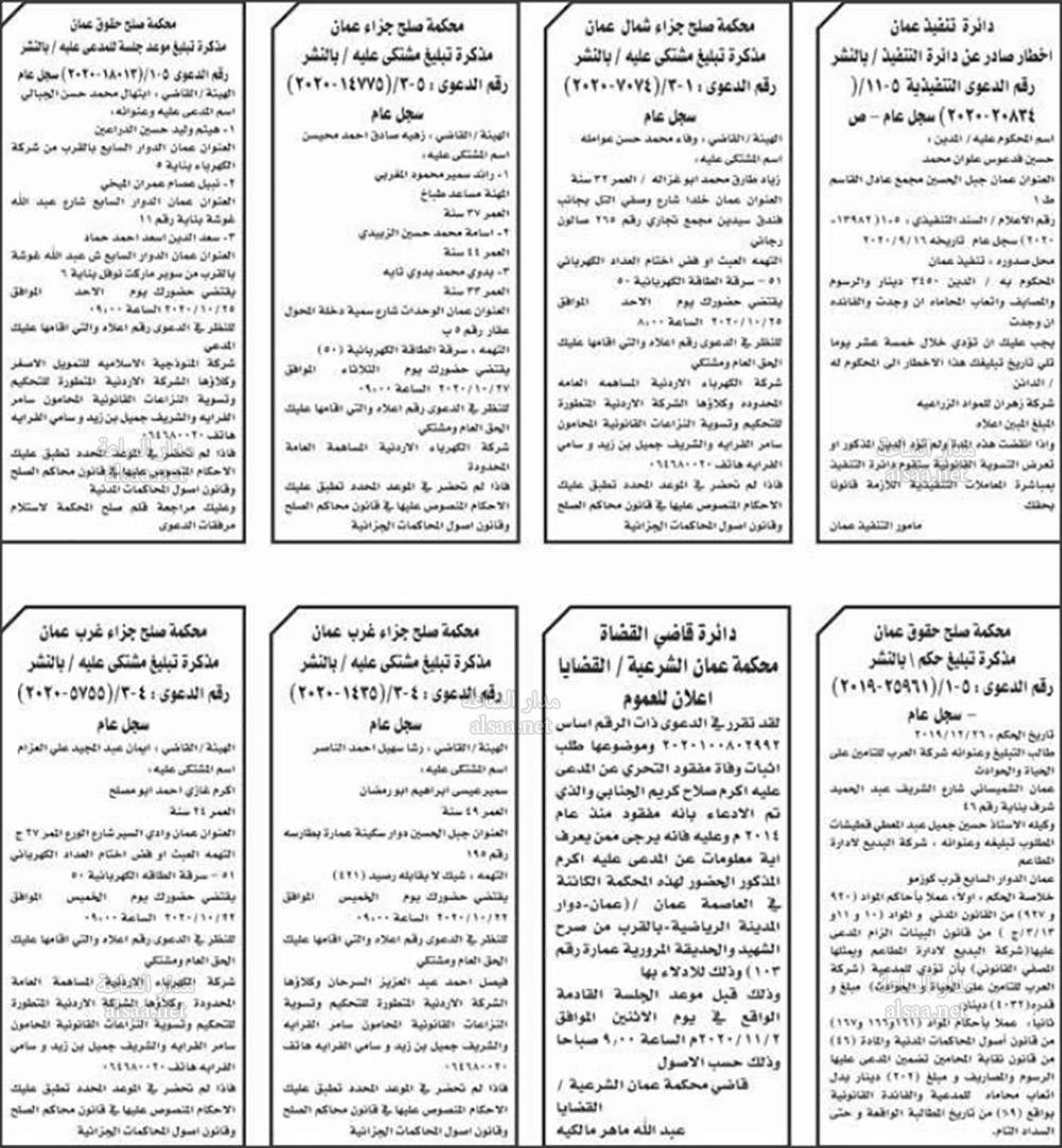 الأربعاء 21-10.. محاكم وتنفيذ قضائي يطلبان مئات الأردنيين "أسماء"