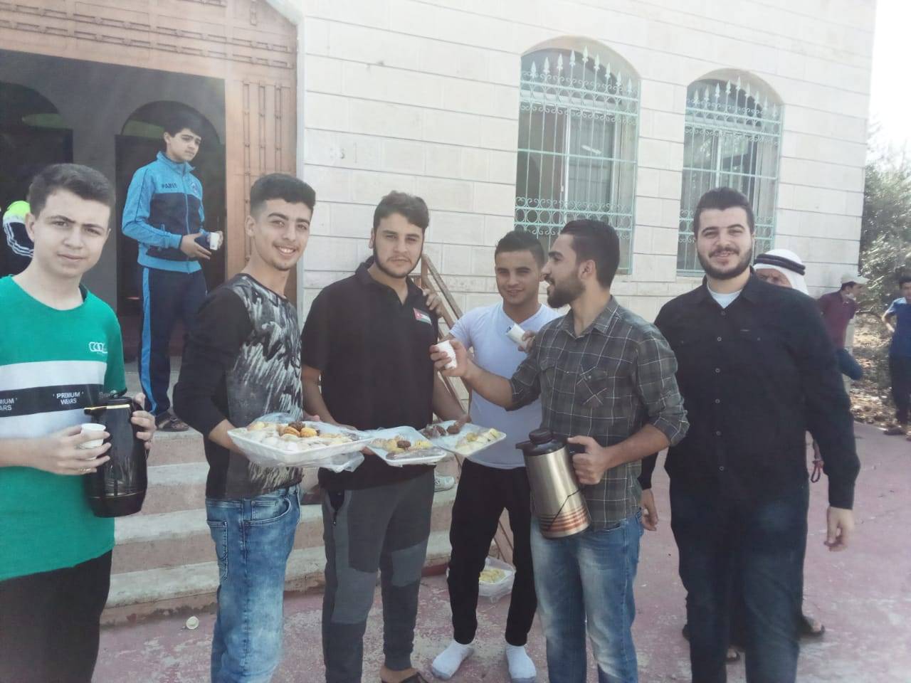 وزع شباب من قرية حور بمحافظة اربد الحلوى و التمر والقهوة على جموع المصلين بعد إنهائهم من تأدية صلاة الجمعة في مسجد حمزة بن عبد المطلب في قرية حور بمناسبة ذكرى المولد النبوي الشريف .