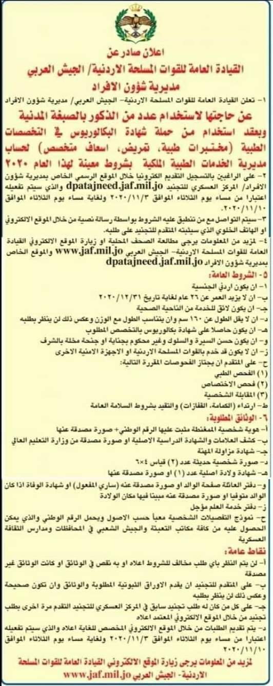 اعلان تجنيد في القوات المسلحة الأردنية الجيش العربي