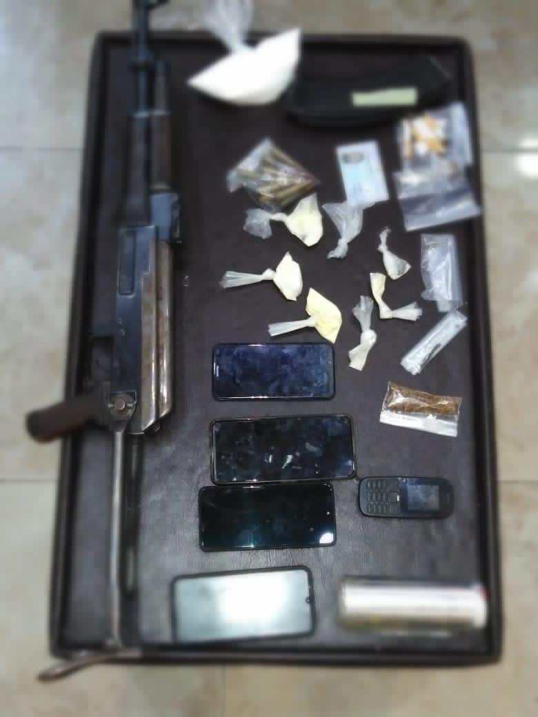 وفي ذات السايق فقد تمكنت قوة امنية مشتركة من مداهمة مكان وجود اكثر مروج للمواد المخدرة نشاطا في محافظة الكرك ، بعد تحديد مكان وجوده والقي القبض عليه وضبط بحوزته اربعة اسلحة نارية ، وكميات متفرقة من المواد المخدرة المعدة للبيع.