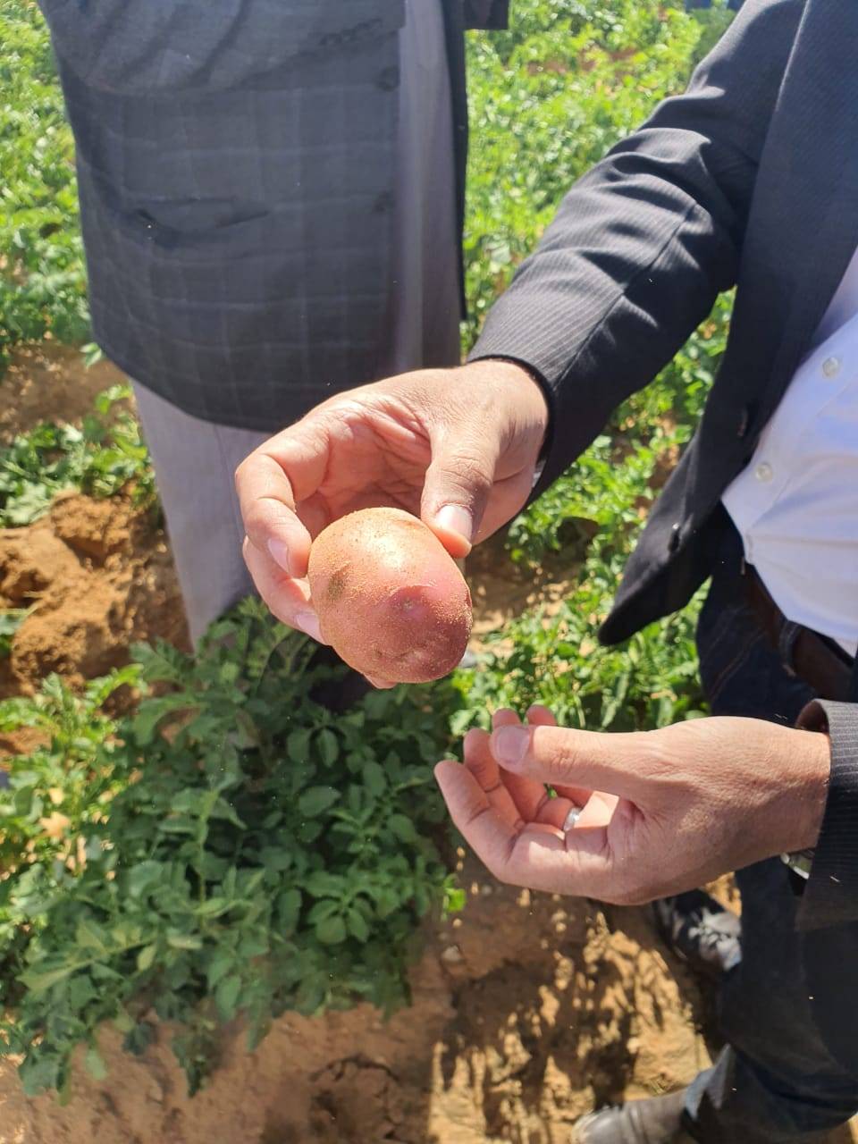 واستمع الوزير خلال جولته على مشروع البشائر من م. ايمن صبري عن نجاح زراعة البطاطا في المنطقة ( المائدة والتصنيعية) بمساحة (1000) دونم لجودة تربتها ضمن هذه المرحلة من قبل مستثمر من أبناء المنطقة وهو السيد خالد العطون وتشغيل الاهالي والنجاح الكبير في زراعة الأنسجة(تيشو كلتشر) التي تزرع لاول مرة في منطقة المدورة مؤكدا العزم على زراعة وانتاج محاصيل جديدة اخرى في المنطقة .