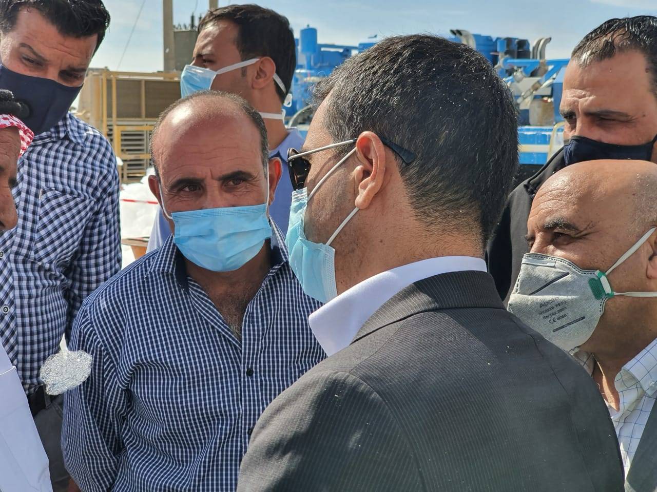 أمضى معالي وزير المياه والري الدكتور معتصم سعيدان سحابة يوم الخميس الموافق ٥/١١/٢٠٢٠ في جولة ميدانية يرافقه امين عام سلطة المياه المهندس احمد عليمات ومدير ادارة الأزمات والسيطرة ابراهيم عبادة حيث اطلع على تقدم سير اعمال حفر الابار التي تنفذها وزارة المياه والري / سلطة المياه ضمن مشاريع المبادرات الملكية في منطقة المدورة الذي جاء تنفيذا لمبادرة جلالة الملك عبدالله بن الحسين حفظه الله والتي تهدف الى تمكين المجتمع المحلي في منطقة المدورة وتشجيع الاستثمار بمحافظة معان لتحسين المستوى المعيشي للأسر والنهوض بالواقع التنموي في هذه المنطقة لتعزيز الإنتاج الغذائي في المملكة .