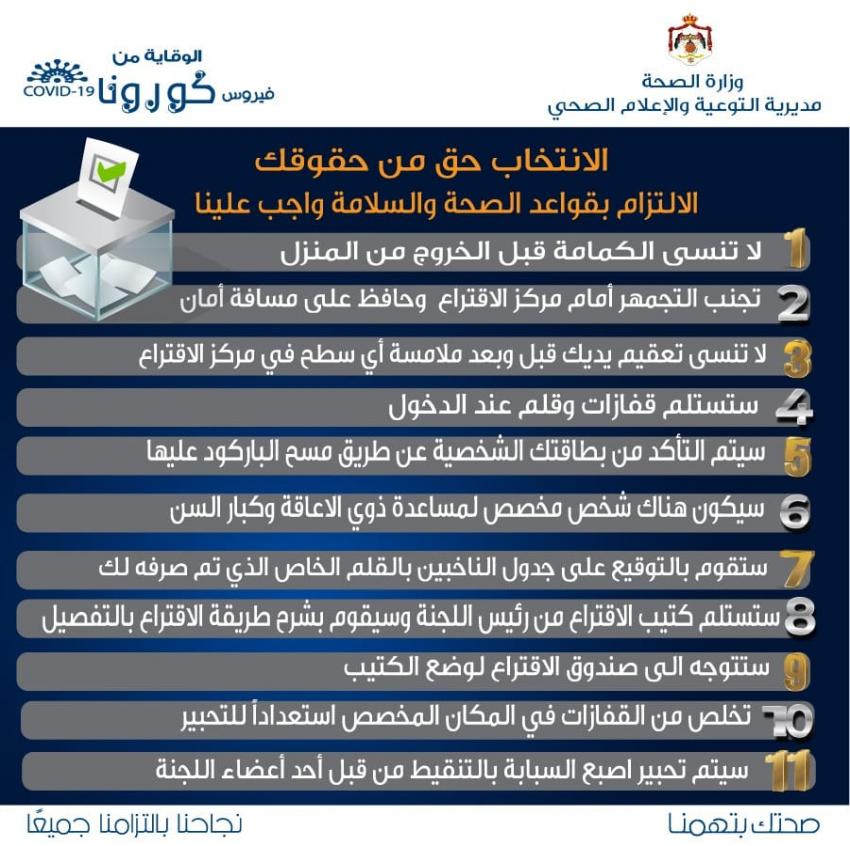 وزارة الصحة تحذّر الأردنيين بيوم الانتخابات: إلتزموا بهذه القواعد والتعليمات