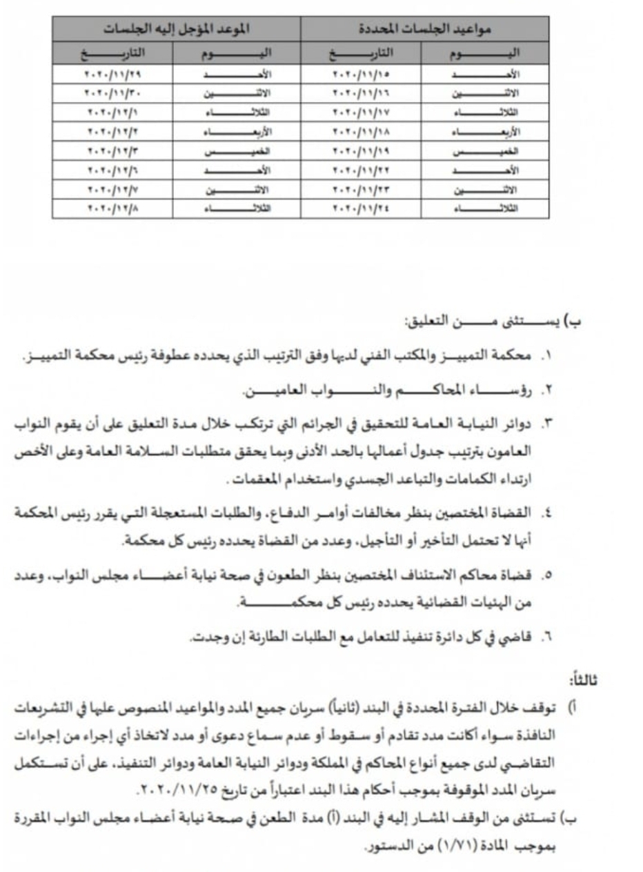 تعليق العمل في محاكم المملكة لمدة عشرة أيام