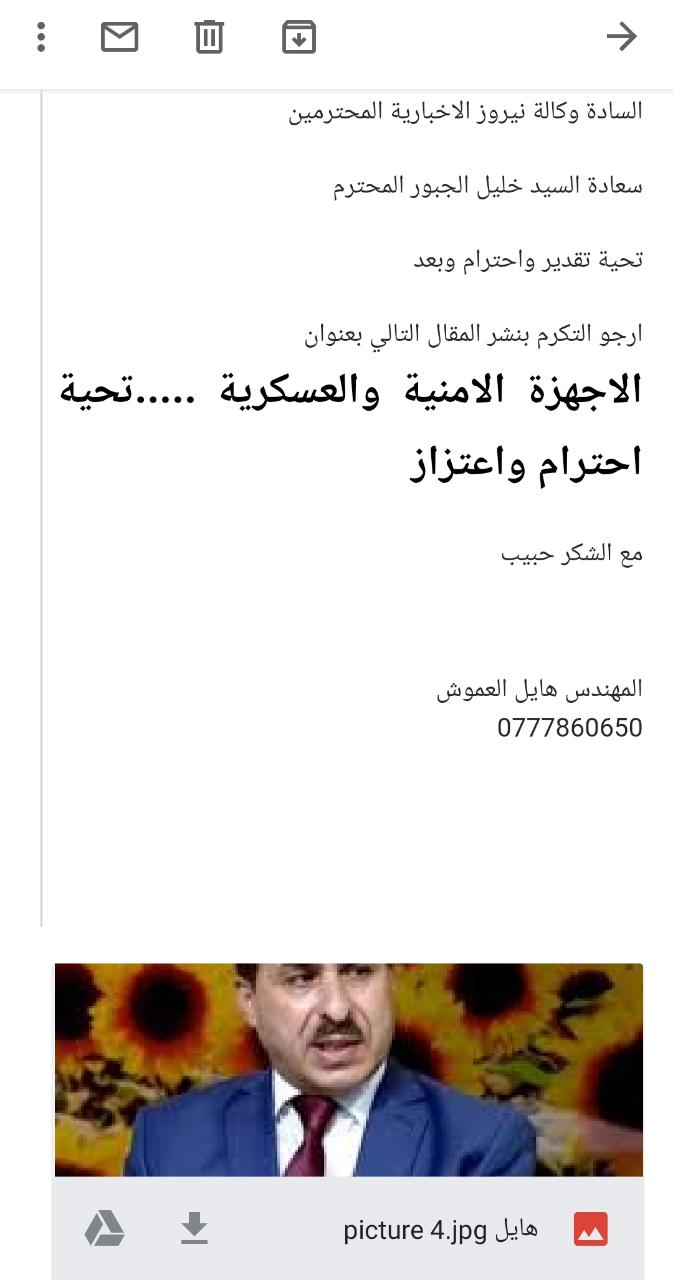 اخر ما أرسله المهندس هائل العموش الى بريد نيروز قبل وفاته بساعات اليوم السبت