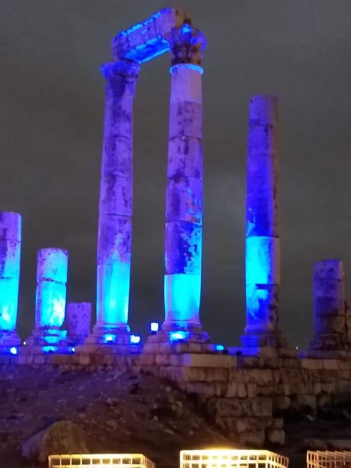 أضاءت دائرة الآثار العامة بالتعاون مع منظمة الأمم المتحدة للطفولة "اليونسيف" مكتب الأردن، عددا من المواقع الأثرية باللون الأزرق، وذلك احتفاء بيوم الطفل العالمي.