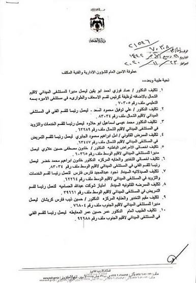 أظهر كتاب صادر عن وزارة الصحة اليوم الثلاثاء أسماء الأطباء المعينون في المستشفيات الميدانية لأقاليم الشمال والوسط والجنوب.