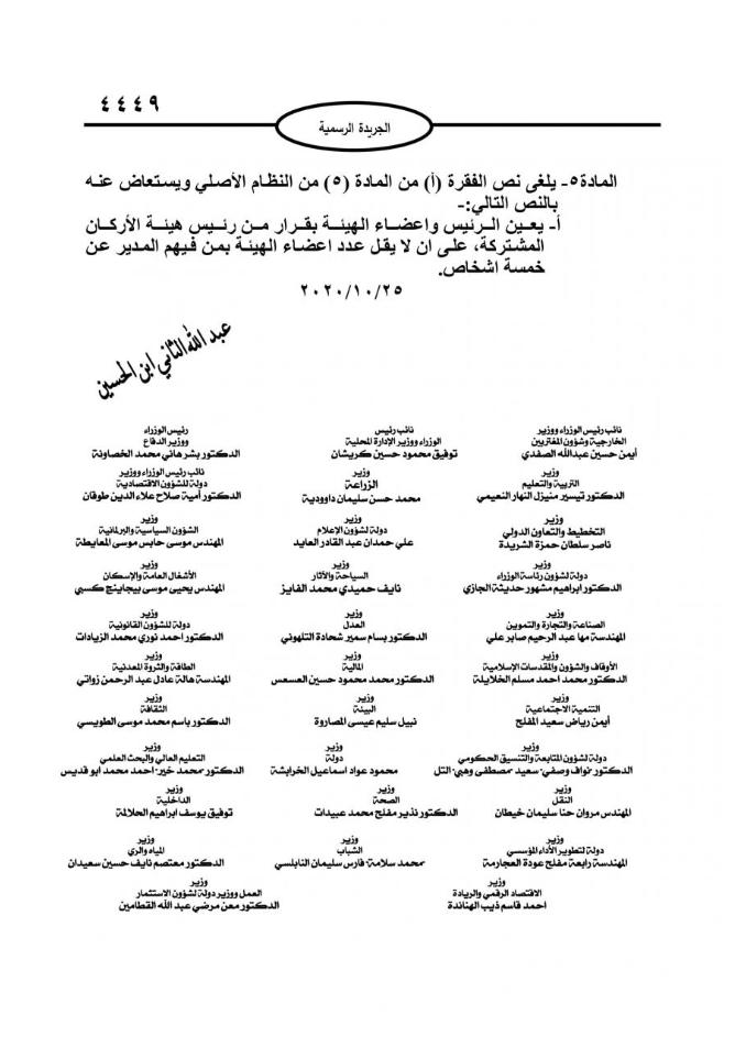 وتم الغاء نص الفقرة أ من المادة 5 من النظام الأصلي واستعاض عنها بالنص التالي: