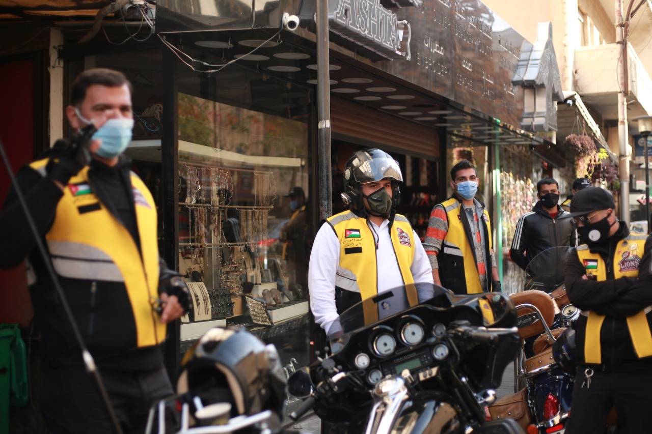 بعد ذلك تم التوجه الى الدوار الاول بداية شارع الرينبو وتم تنفيذ المبادرة على ارض الواقع وبمشاركة فريق الدراجات النارية وفريق سيارات الدفع الرباعي وعدد كبير من الشباب المتطوعين ولغاية شارع الرينبو حيث تم توزيع الكمامات ومعقم الايدي والقلفزات على ابناء المجتمع المحلي وسيتم امتداد هذه المبادرة على مستوى المملكة.