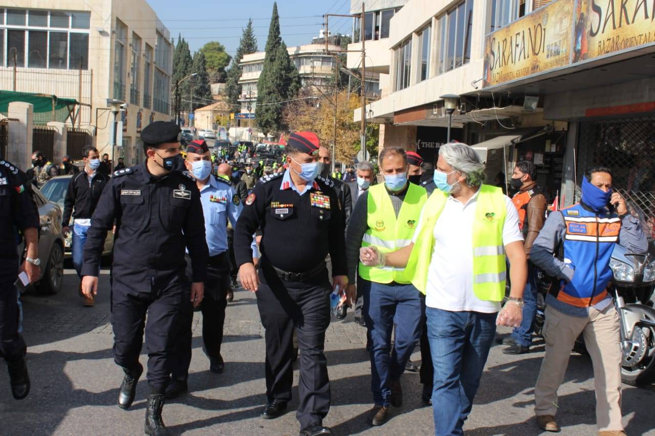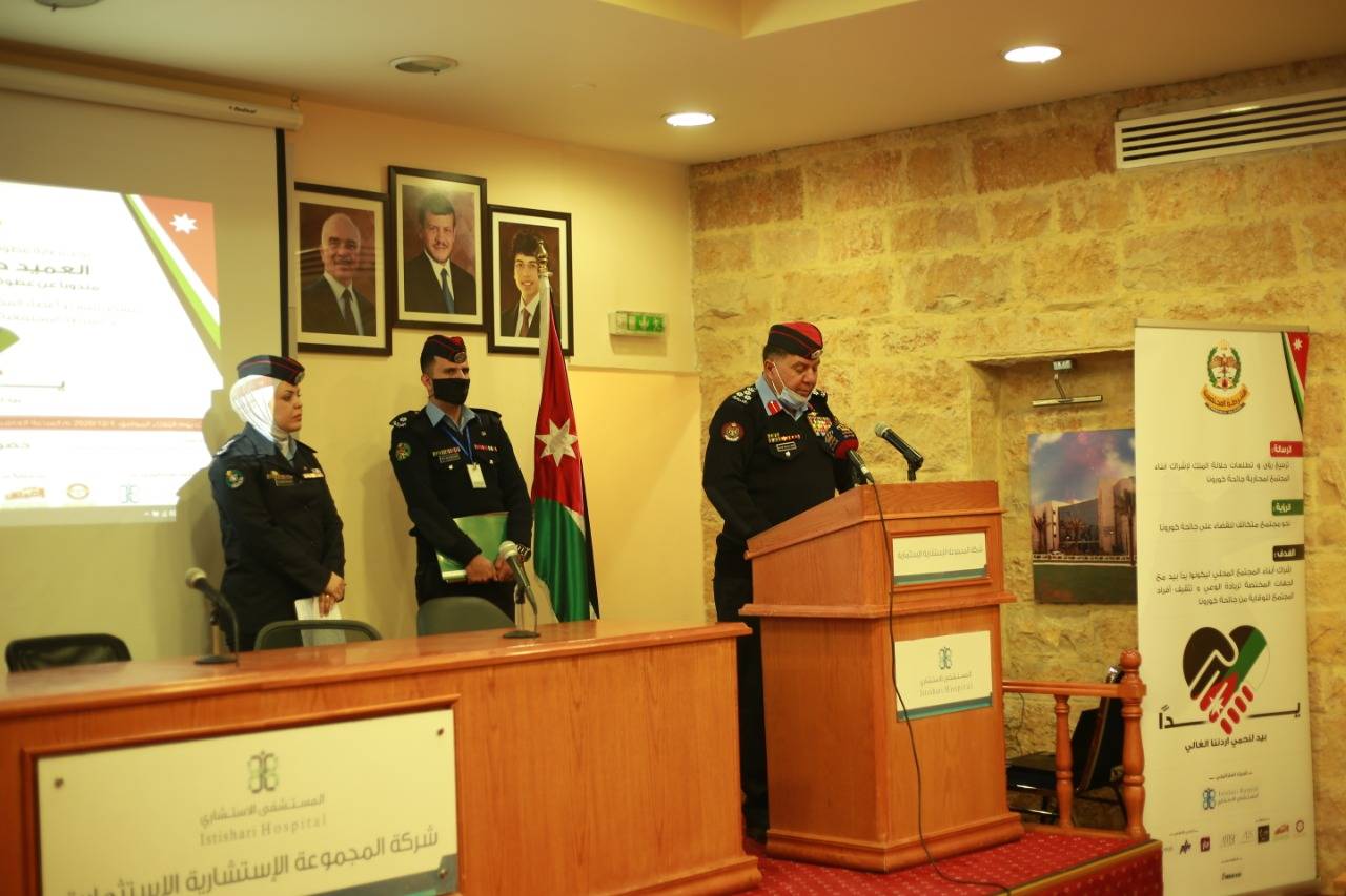 رعى قائد أمن إقليم العاصمة العميد الركن حاتم المواجدة مندوبنا عن مدير الأمن العام حفل إطلاق مبادرة (يدا بيد نحمي اردننا الغالي)التي تم تنسيقها من قبل قسم الشرطة المجتمعية في إقليم العاصمة وبتنظيم من مكتب الشرطه المجتمعيه في مركز امن زهران ومؤسسة معجبي الاردن واعضاء المجلس الامني المحلي لمركز امن زهران حيث تم اطلاق المبادرة من داخل المستشفى الاستشاري وبالتعاون مع جميع الشركاء